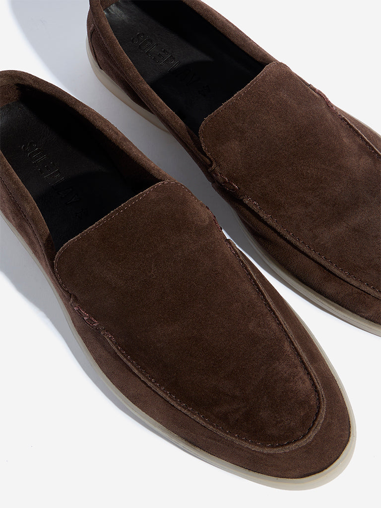 Elevate your look with Soleplay’s brown loafers. the perfect blend of sophistication and comfort! Crafted with a rich suede leather finish and stylish stitched detailing. these loafers bring a refined touch to your footwear collection. With a soft insole for lasting comfort and a durable outsole for reliable wear. they effortlessly combine timeless style with everyday practicality.