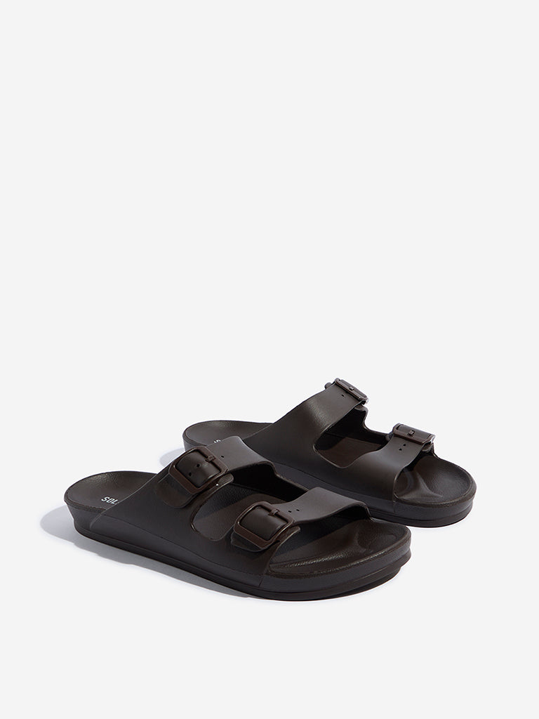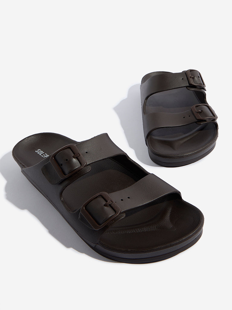 SOLEPLAY Dark Brown Dual-Strap Slip-On Sandals