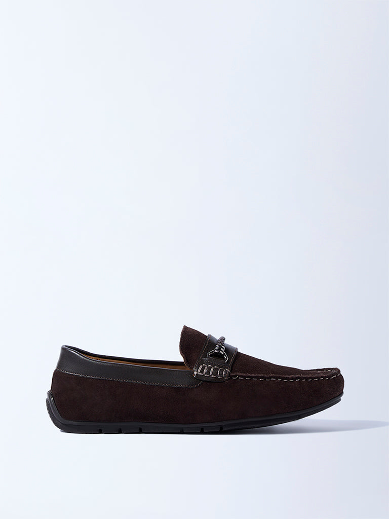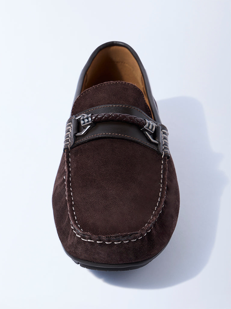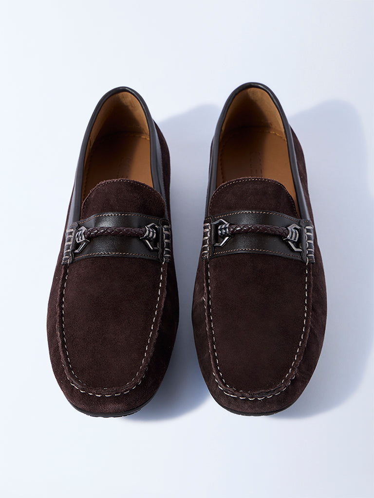 SOLEPLAY Dark Brown Suede Braided-Detail Leather Loafers