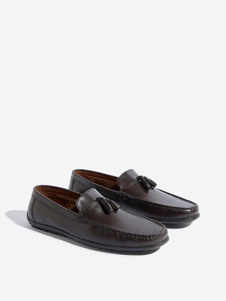 These dark brown slip-on shoes from Soleplay exude timeless charm with their tassel detailing on the upper. Designed for both style and ease. they feature a cushioned insole for superior comfort and a textured outsole that ensures enhanced grip and durability.