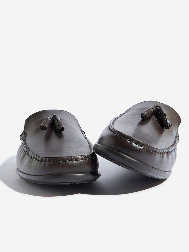 SOLEPLAY Dark Brown Tassel Leather Slip-On Shoes