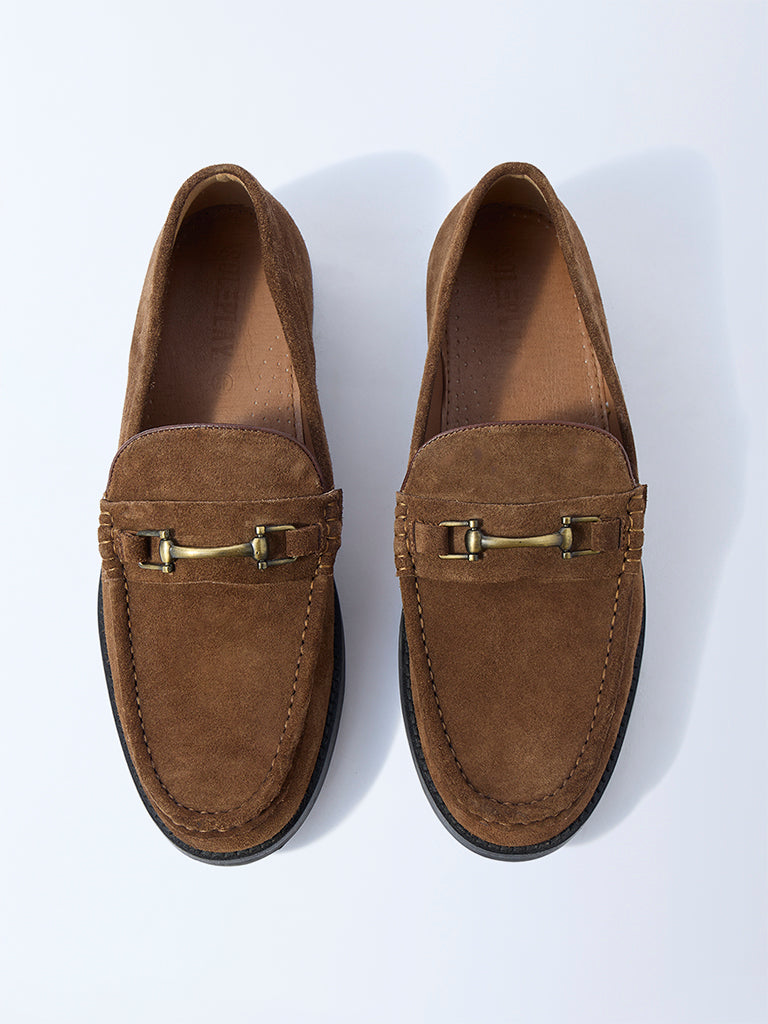 SOLEPLAY Dark Tan Suede Graham Buckle Leather Loafers