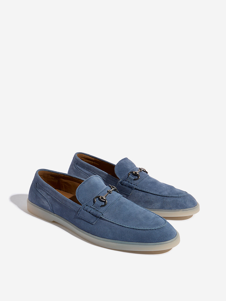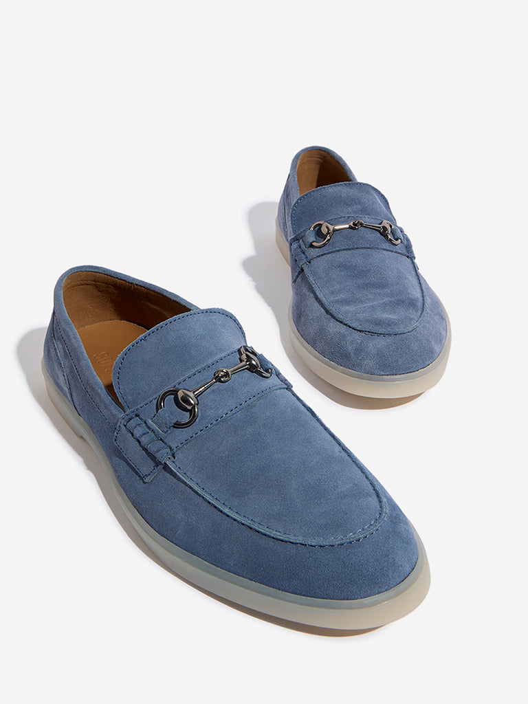 SOLEPLAY Dusty Blue Metal-Detailed Suede Leather Loafers