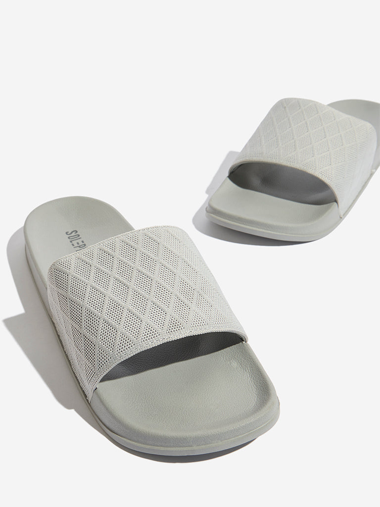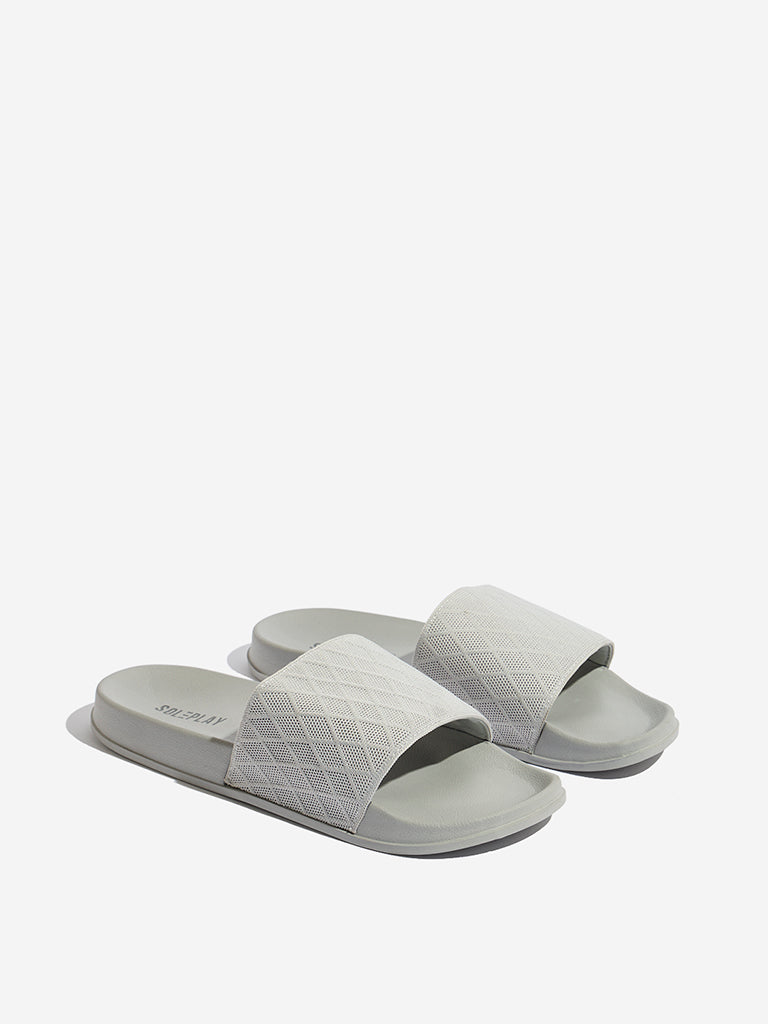 SOLEPLAY Grey Knit-Textured Slides