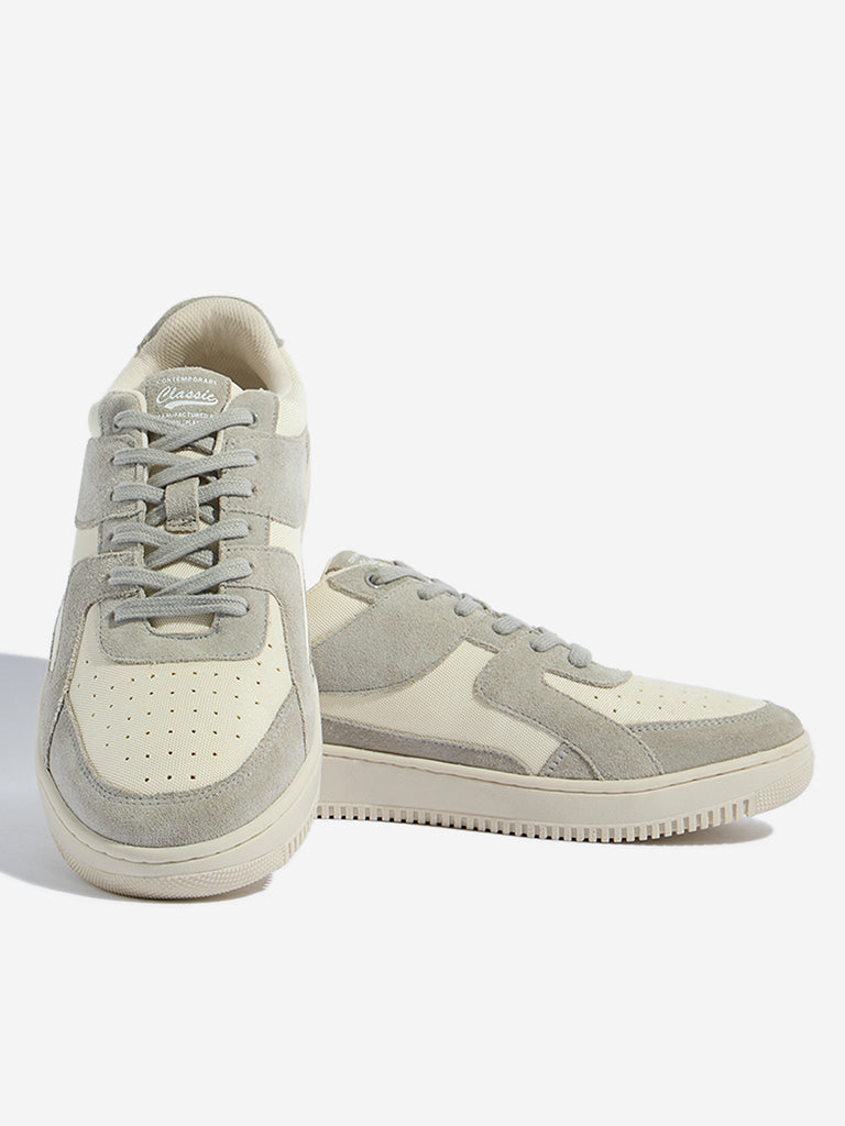 These grey sneakers from Soleplay feature a suede exterior with perforated detailing on the vamp for enhanced breathability and a sleek. modern edge. The lace-up design ensures a secure fit. while the cushioned insole offers all-day comfort. Finished with a textured outsole. they provide reliable grip for everyday wear.