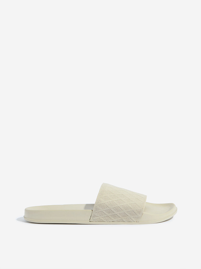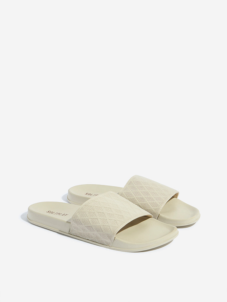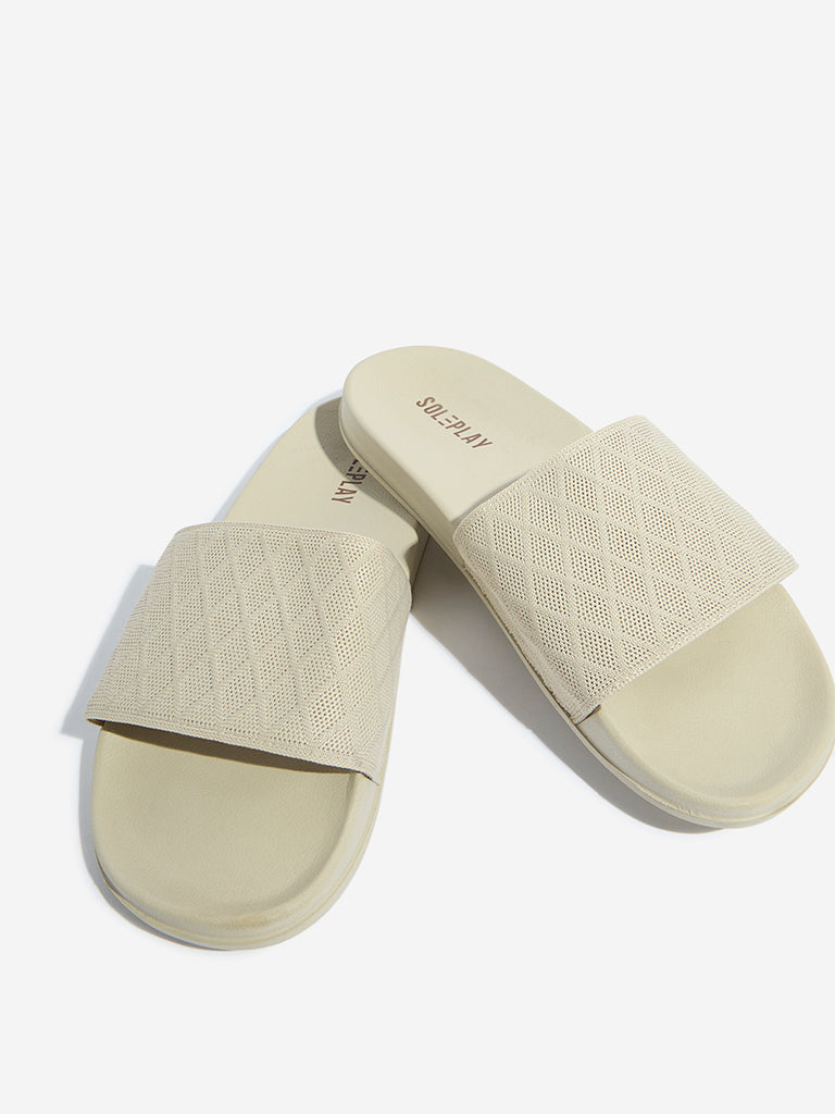 SOLEPLAY Ivory Cross Knit-Textured Slides