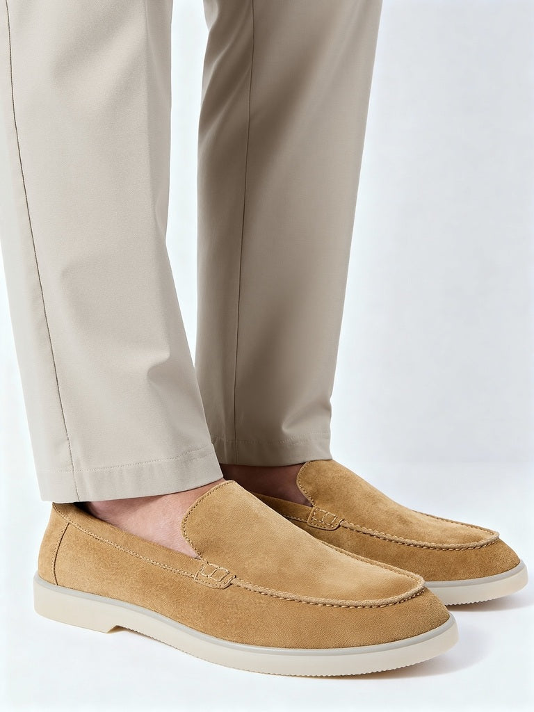 When the occasion calls for easy refinement. reach for these mustard suede loafers from Soleplay. Designed with understated stitch detailing and a slip-on silhouette. they combine sharp looks with everyday comfort. A cushioned footbed and textured outsole ensure dependable wear all day long.