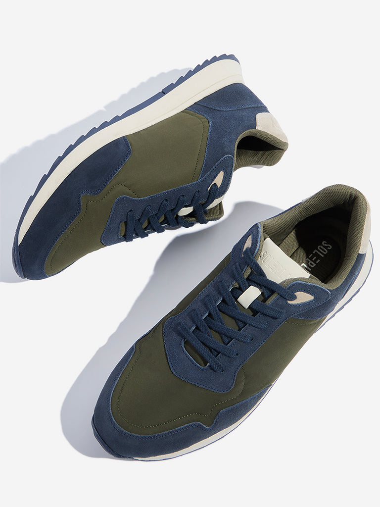 Add colour to your footwear with these navy sneakers from Soleplay. Designed with cushioned interiors for added comfort. these lace-ups feature a suede textured finish and ridged outsoles for excellent traction.