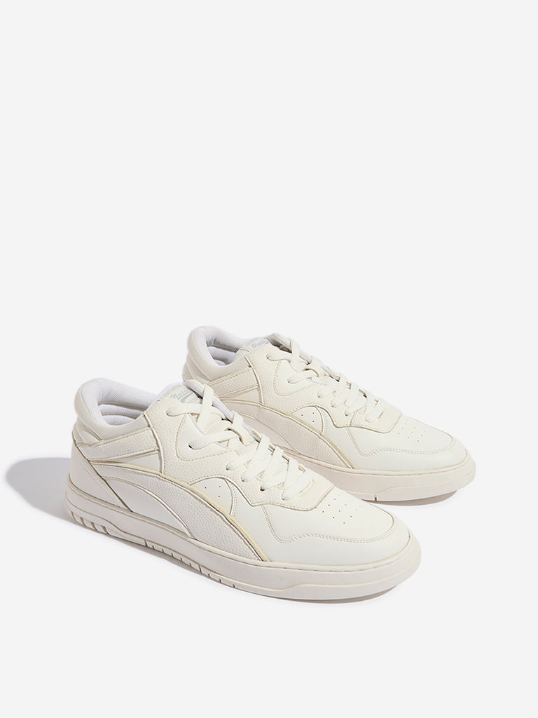 Elevate your style with these off-white high-top sneakers by Soleplay. designed with a perforated vamp for a sleek touch. A soft insole ensures cushioned comfort. while the ridged outsole provides enhanced grip.