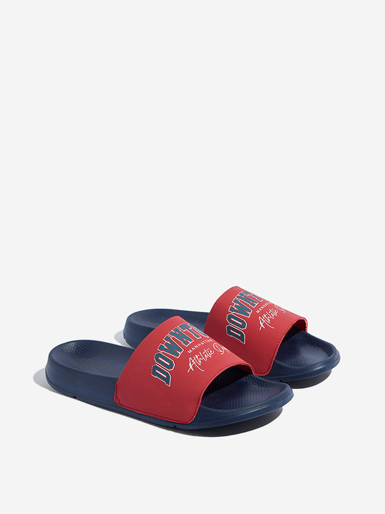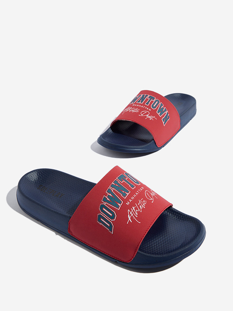 These red pool slides by Soleplay blends casual style with everyday comfort. The wide strap features bold text detailing. while the soft. textured insole offers a cushioned feel. The textured outsole enhances grip. making them a reliable choice for both lounging and outdoor strolls.