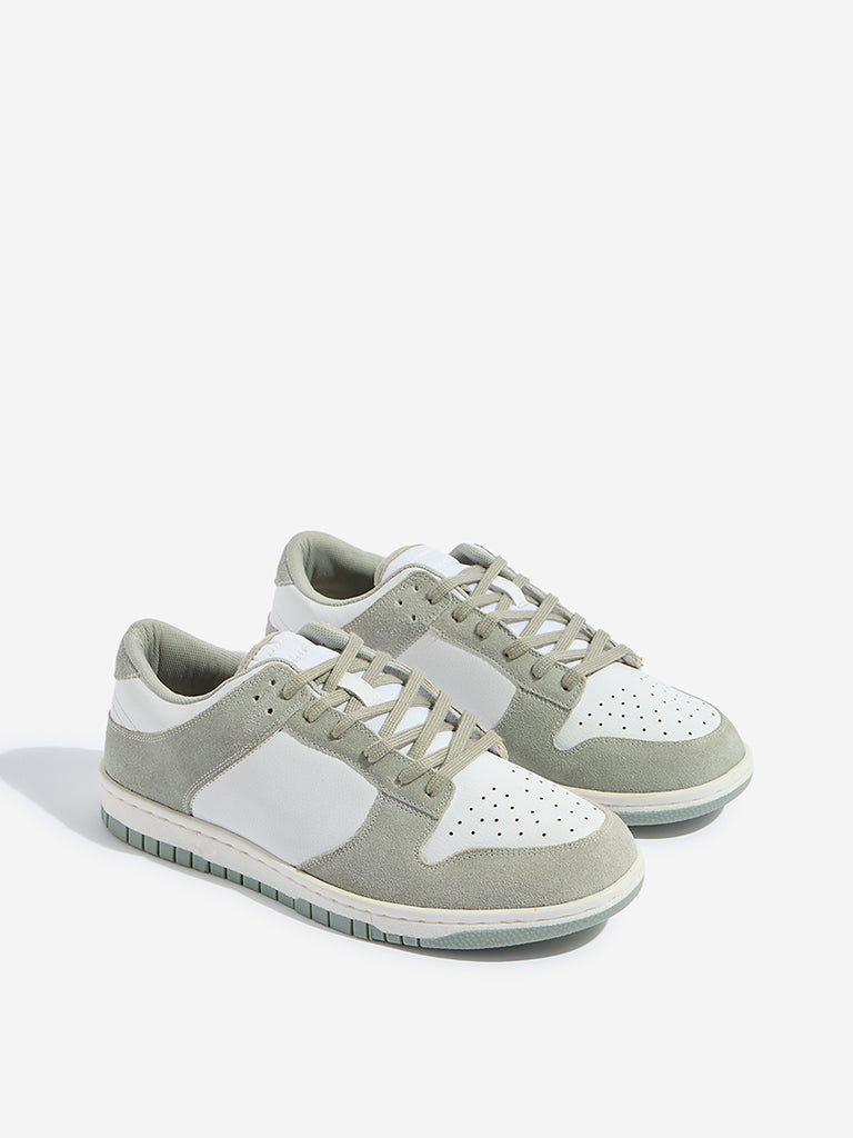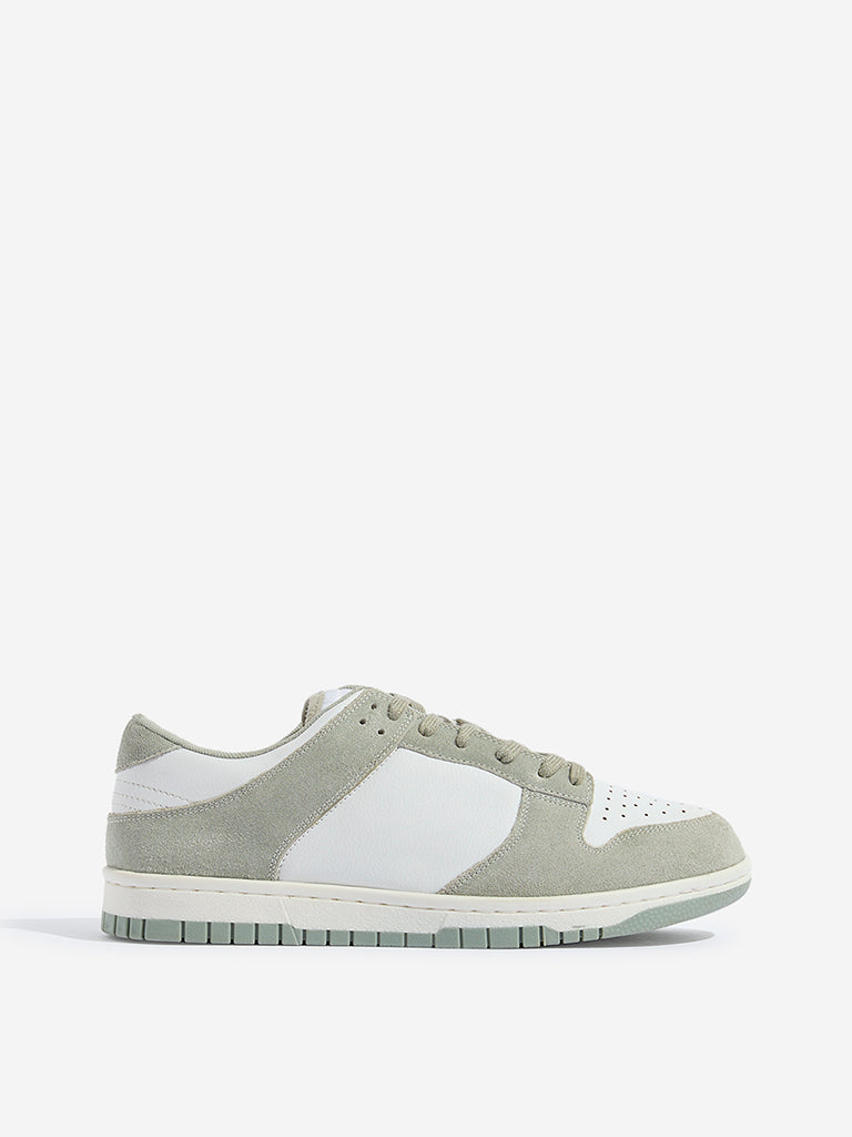 These sage lace-up sneakers from Soleplay are built with a suede upper and perforated detailing for improved airflow. Tonal laces create a clean. streamlined look that complements the minimalist design. Designed with a cushioned insole for lasting comfort and a ridged outsole for reliable grip. they’re a versatile pick for everyday wear.