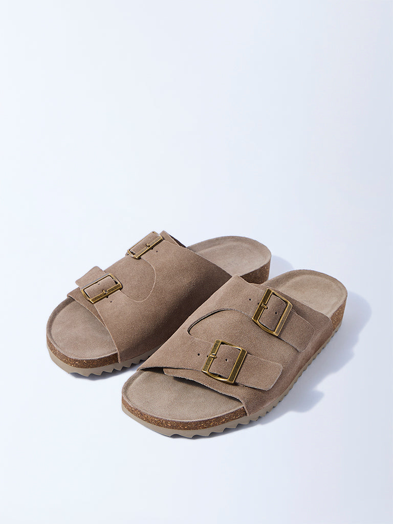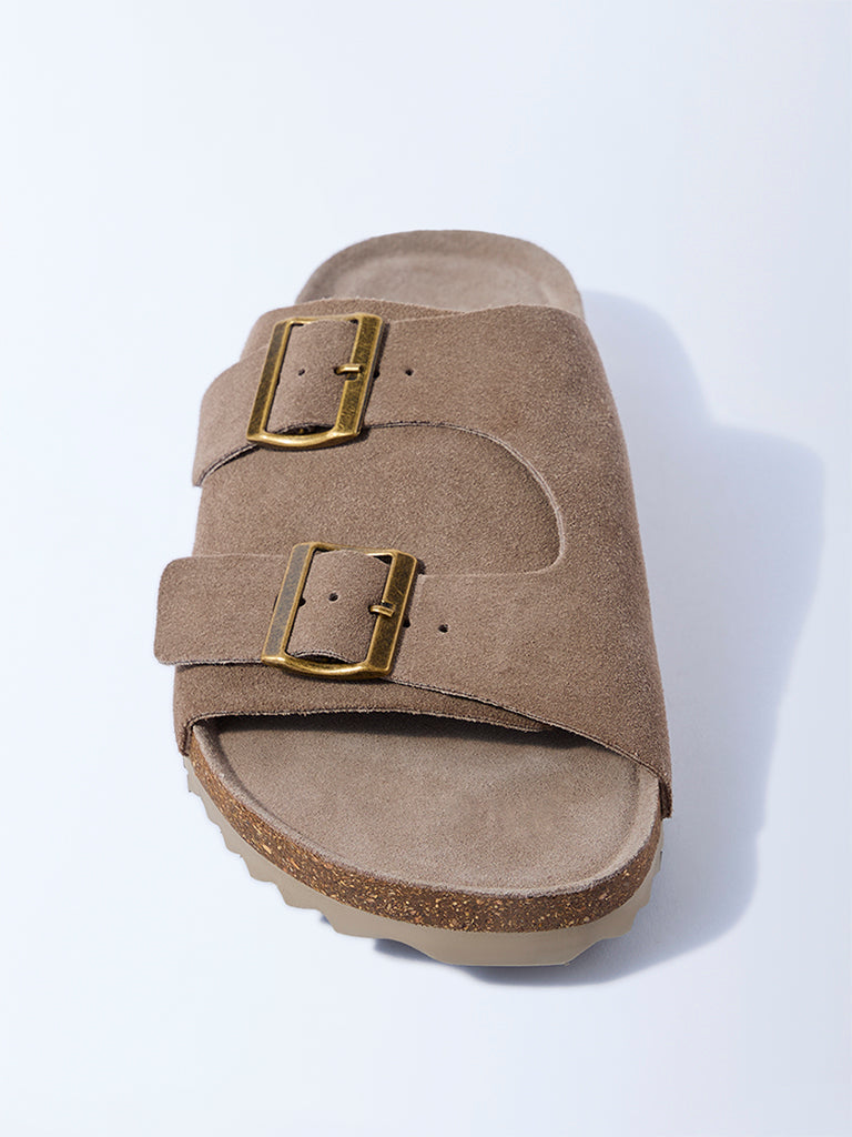 SOLEPLAY Taupe Buckle-Detail Suede Leather Sandals