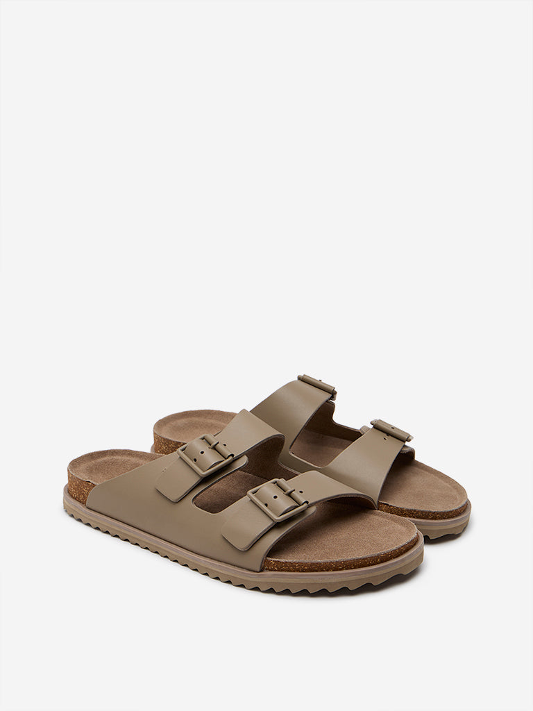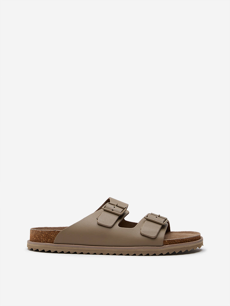 These taupe sandals by Soleplay offer double bands in the upper along with adjustable buckles. Crafted with soft and durable fabric. they include a cushioned insole. cork-textured midsole and sturdy outsole for a comfortable walking experience.