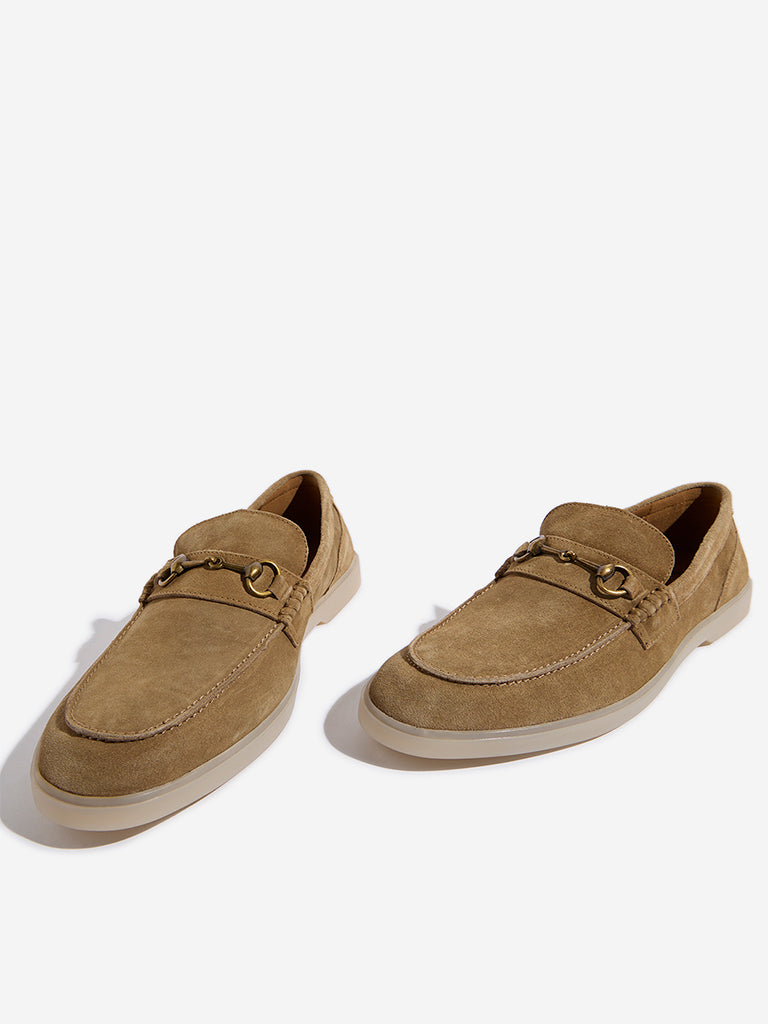 SOLEPLAY Taupe Metal-Detailed Suede Leather Loafers