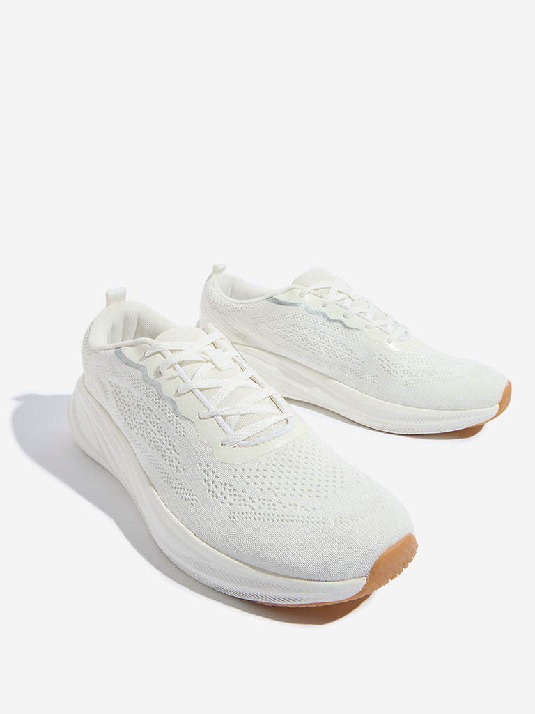 Soleplay brings these white sneakers showcasing a knit design exterior with perforated details for breathability and a contemporary look. The lace-up fastening offers a secure fit. while the cushioned insole ensures lasting comfort. Finished with a textured outsole for a reliable grip. these sneakers are an easy choice for everyday wear.