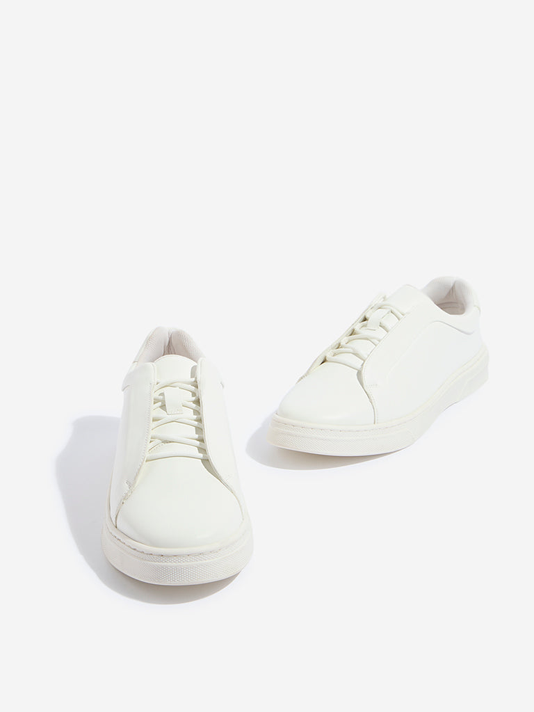 Soleplay launches these classic white sneakers featuring a smooth upper. complemented by a lace-up closure for a secure and adjustable fit. A cushioned insole provides comfort for everyday wear. while the ridged outsole ensures reliable traction.
