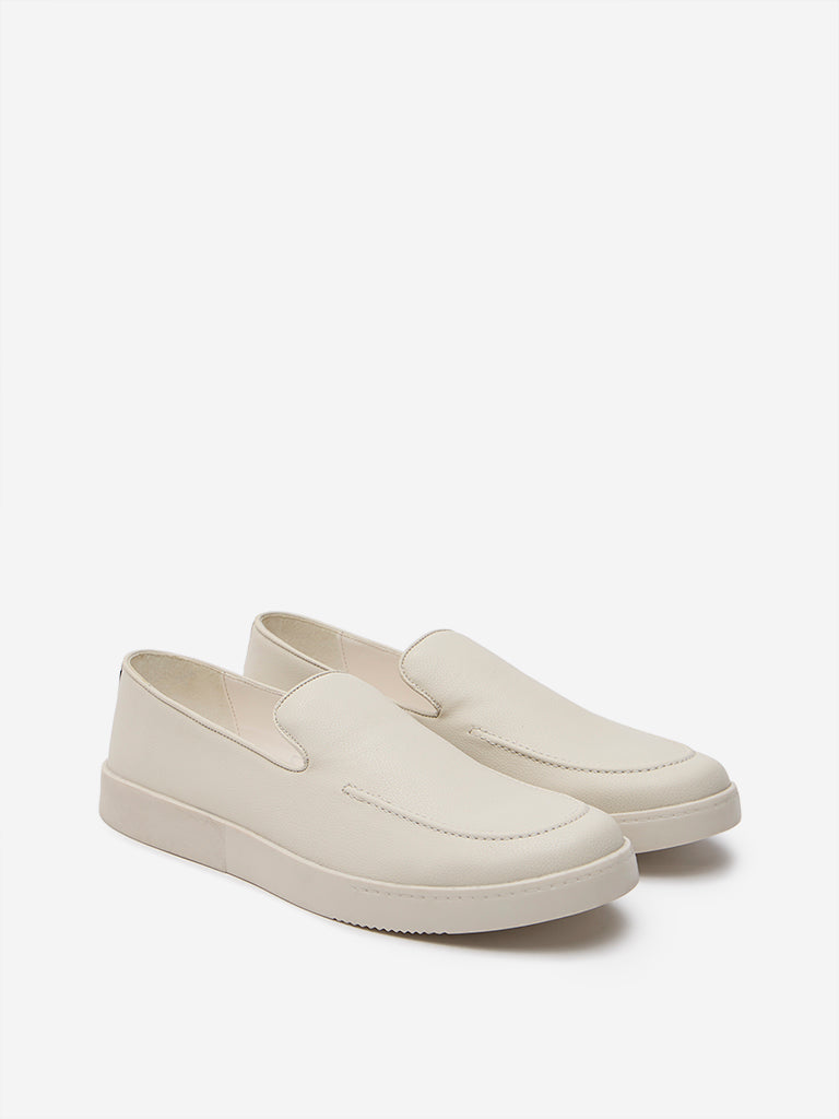 Sole play’s white slip-on loafers feature an elevated upper for a refined. stylish look. Built with durable materials. they offer a soft insole for comfort. a supportive midsole. and a textured outsole for reliable traction??perfect for day-to-night wear.