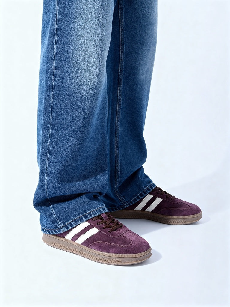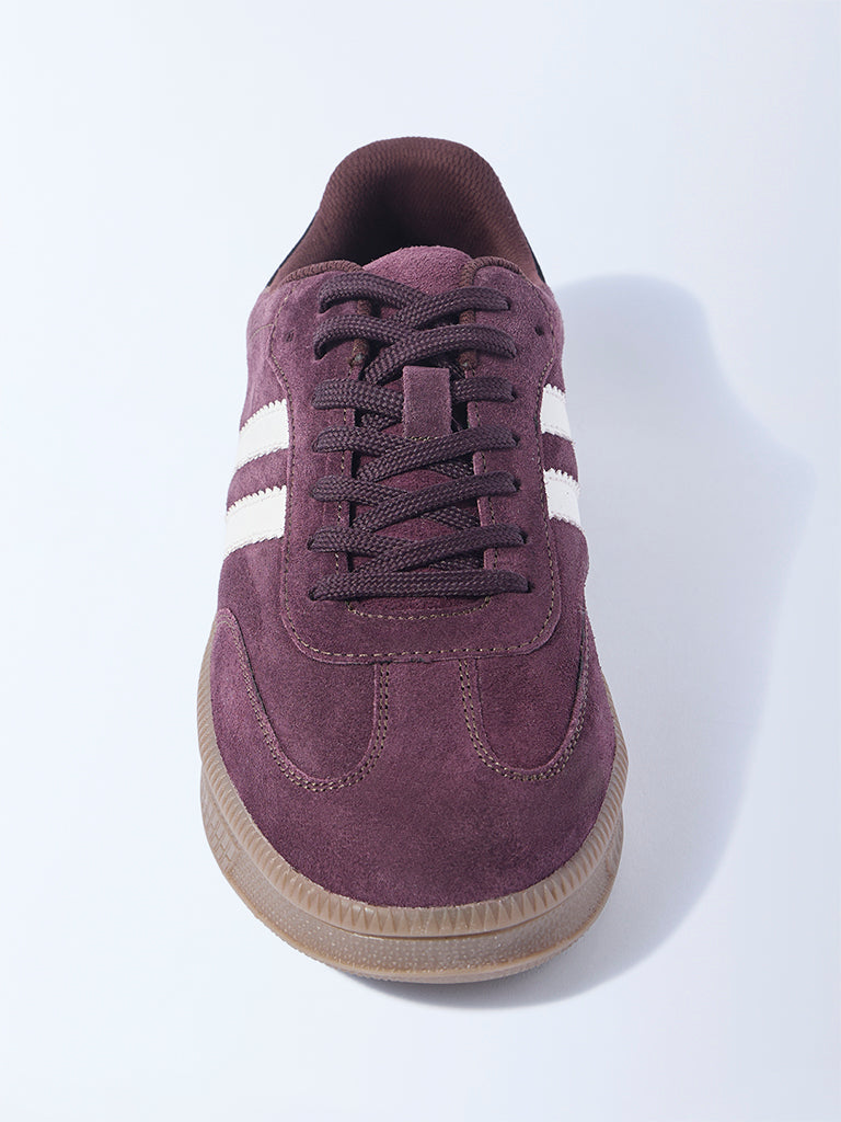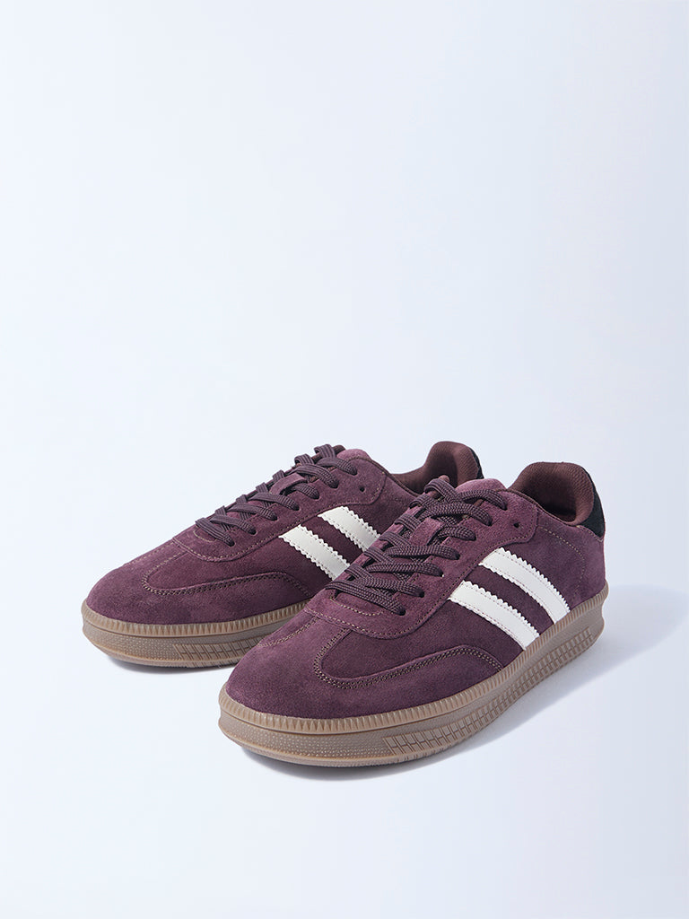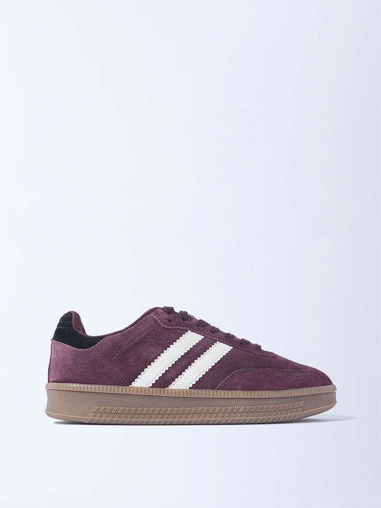 Soleplay brings a retro edge to your off-duty style with these wine sneakers. finished with bold contrast stripes. Designed with a rich suede upper. they secure with a classic lace-up closure and rest on a cushioned insole for lasting comfort. Set on a ridged gum outsole that offers dependable grip. this versatile pair transitions seamlessly from casual outings to off-duty weekends.
