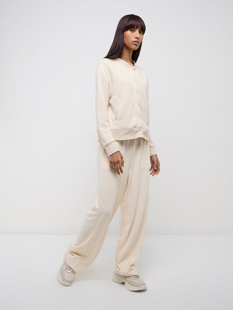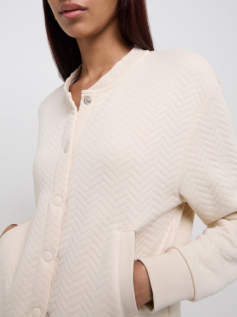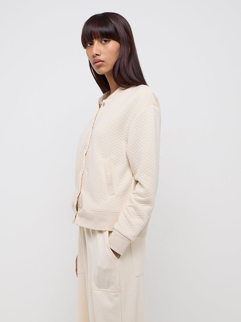 Studiofit Beige Chevron Textured Cotton-Blend Jacket