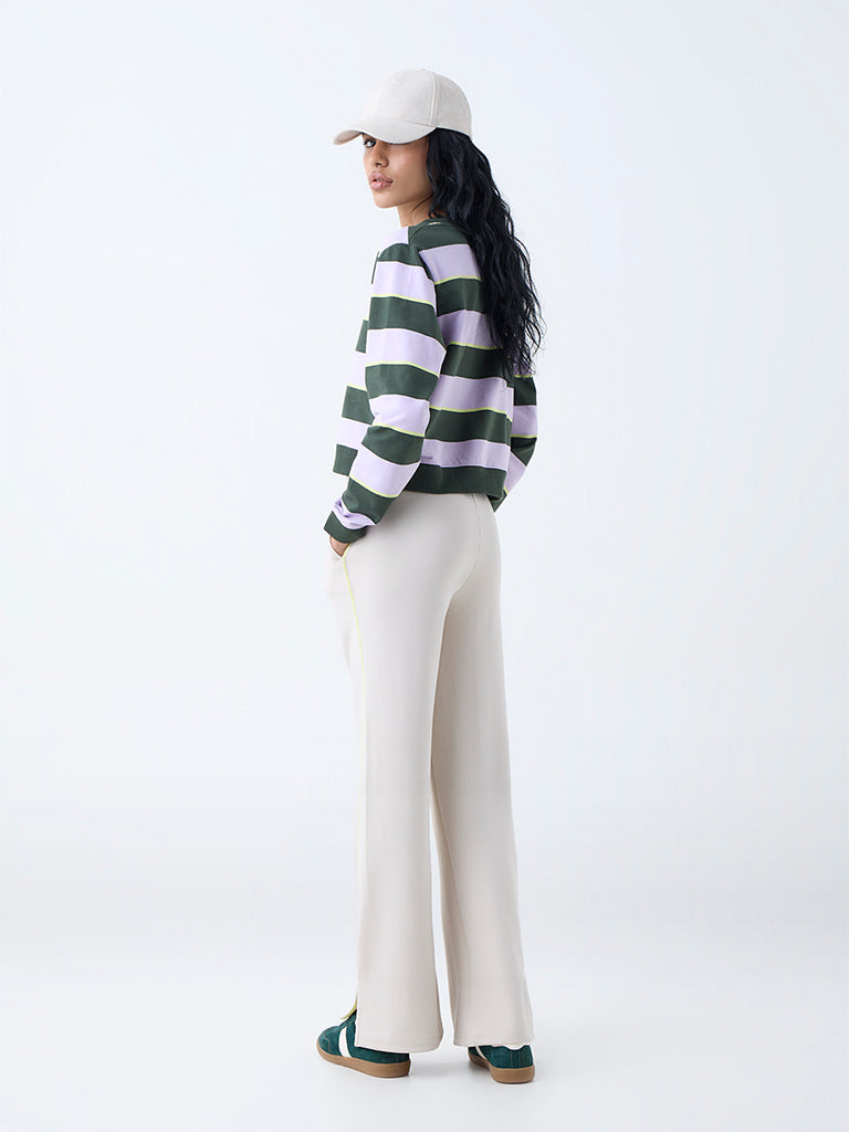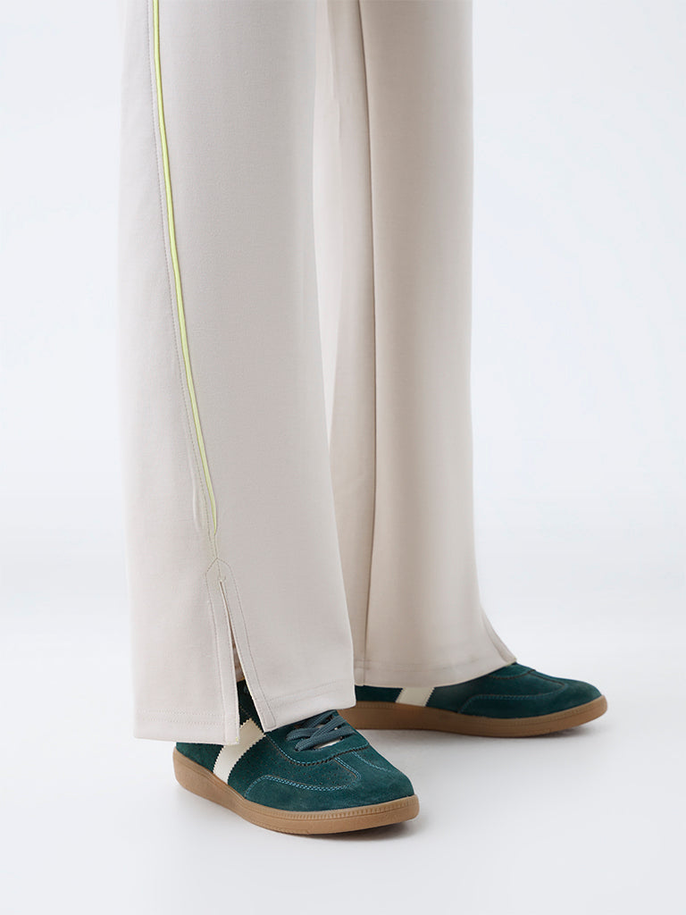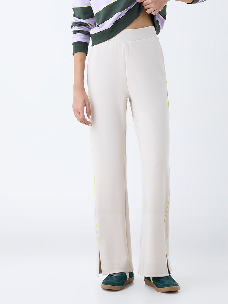 Studiofit Beige Slit-Detailed High-Rise Pants