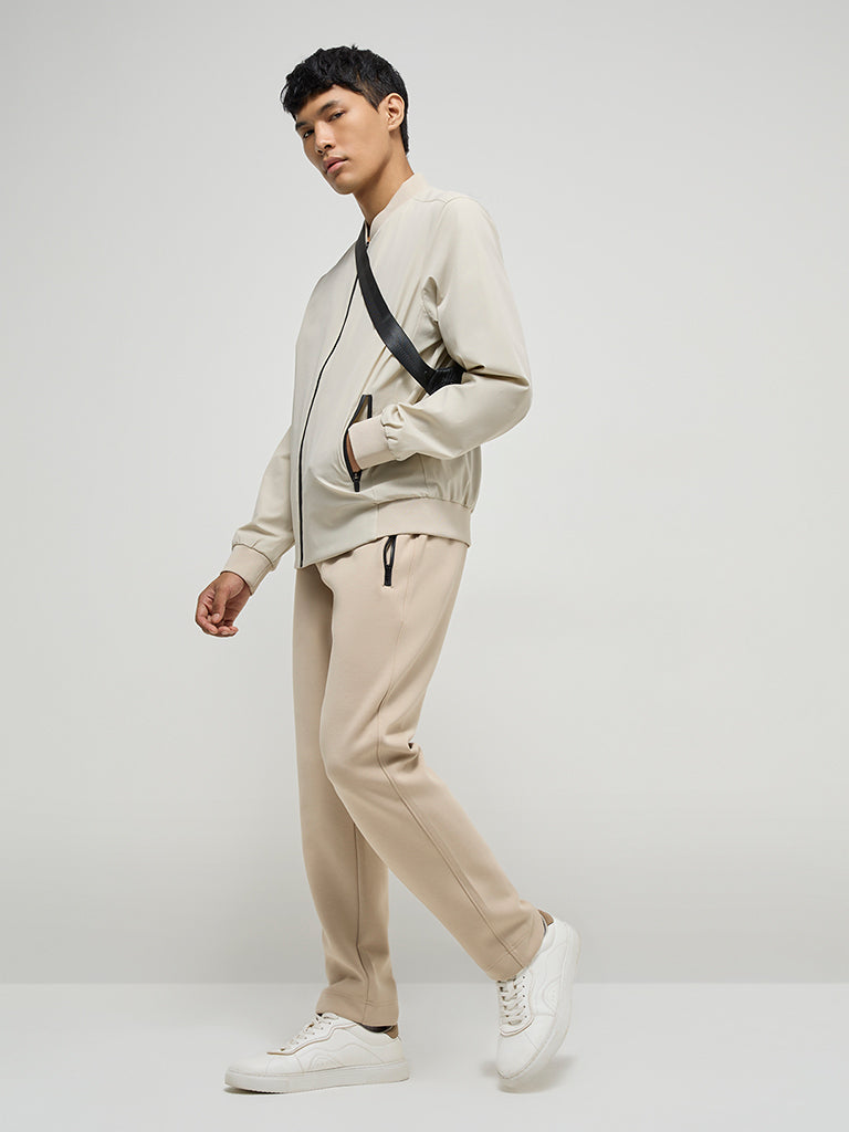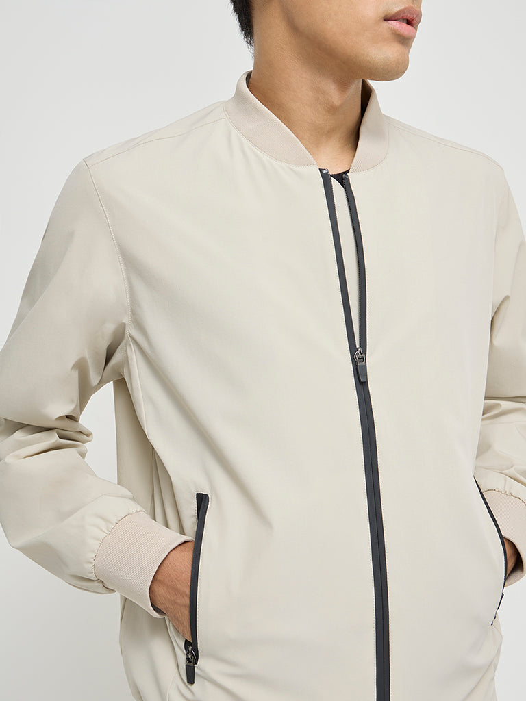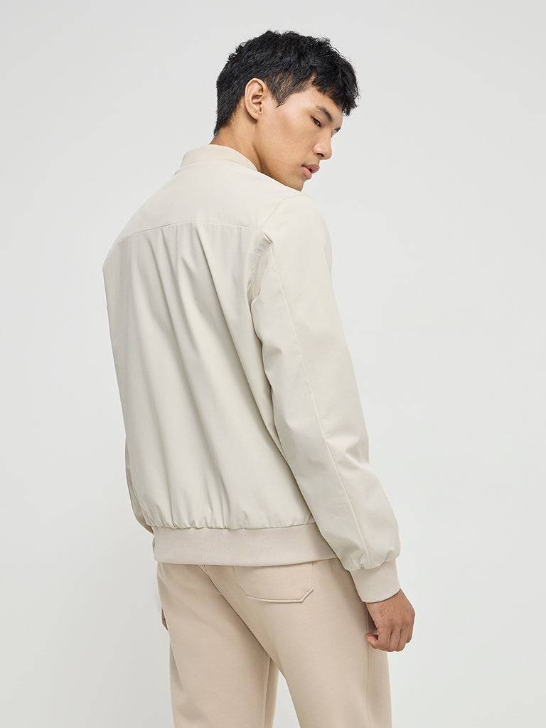 Studiofit Beige Solid Relaxed-Fit Jacket
