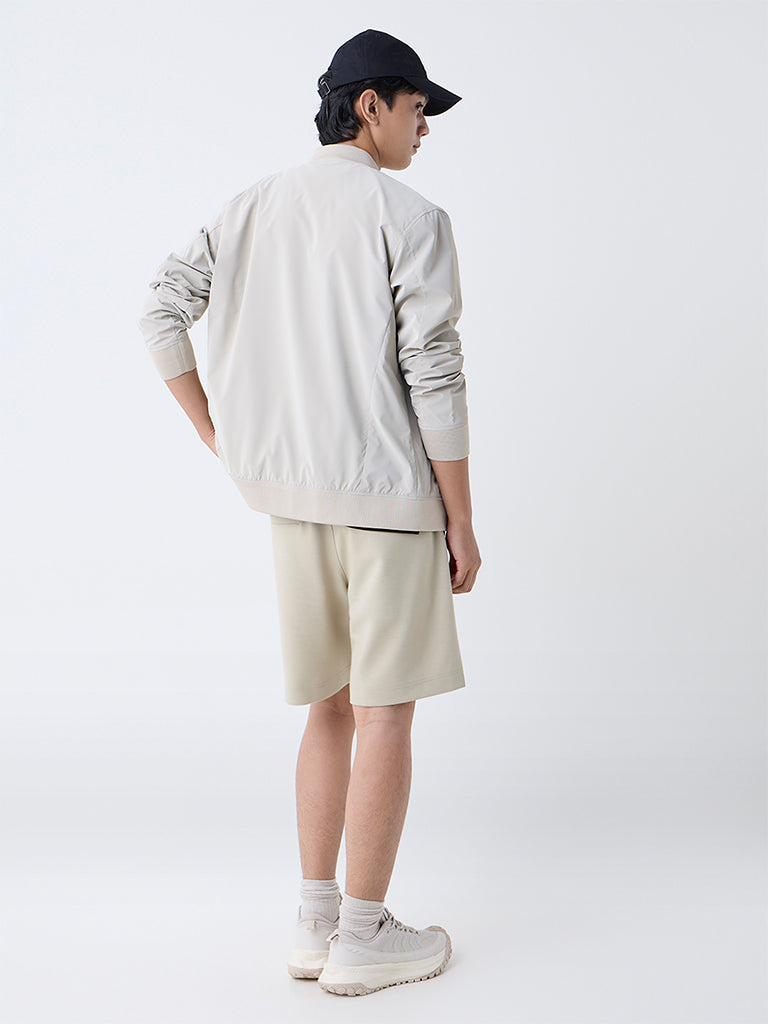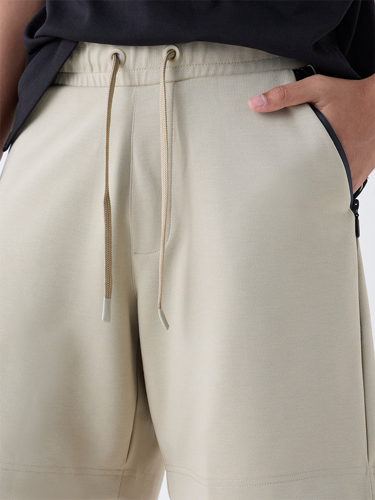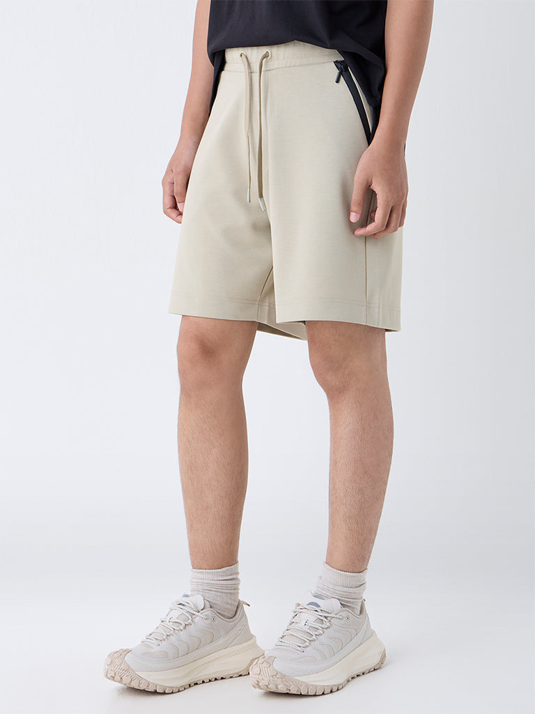 Studiofit Beige Solid Relaxed-Fit Mid-Rise Shorts