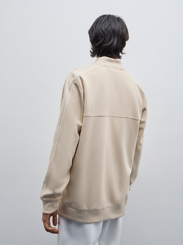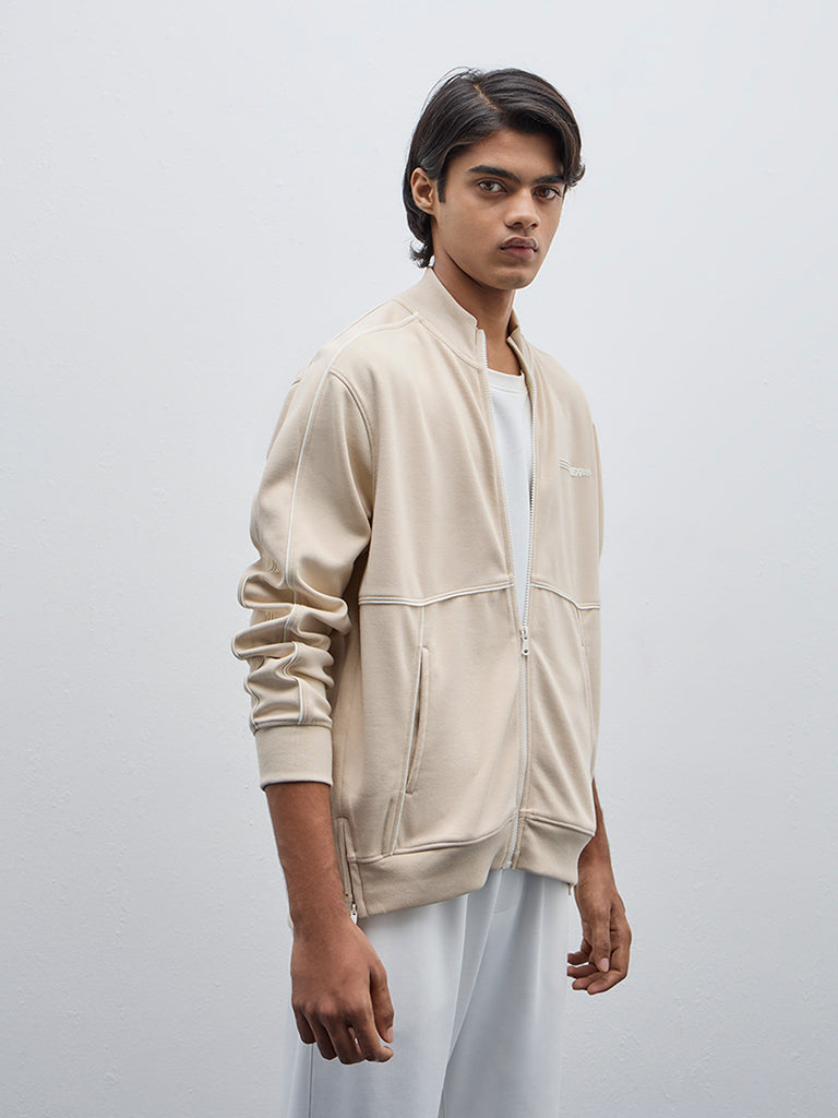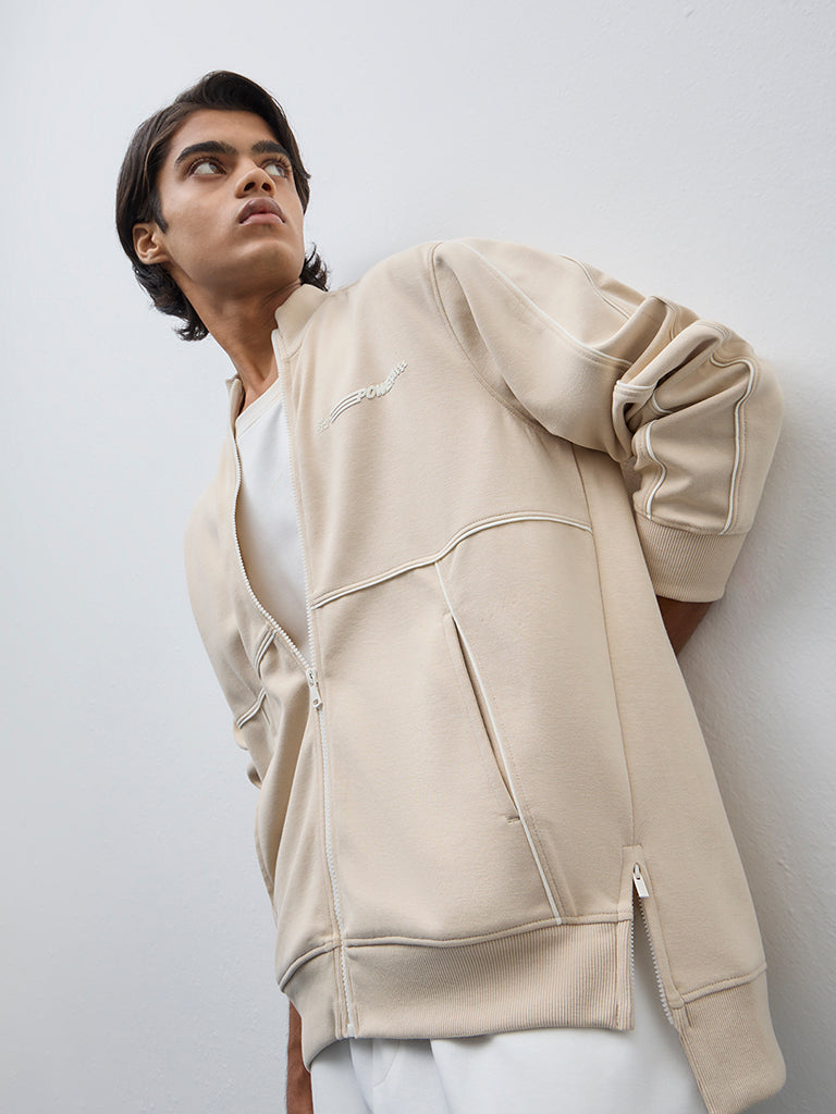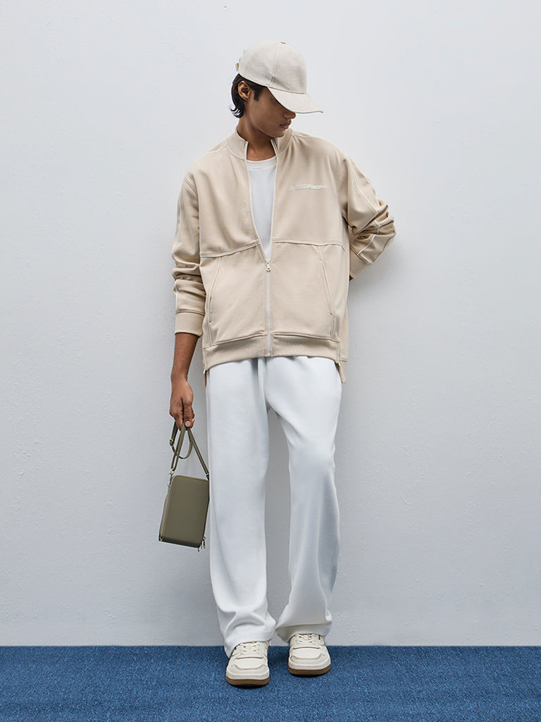 Studiofit Beige Text Design Relaxed-Fit Jacket