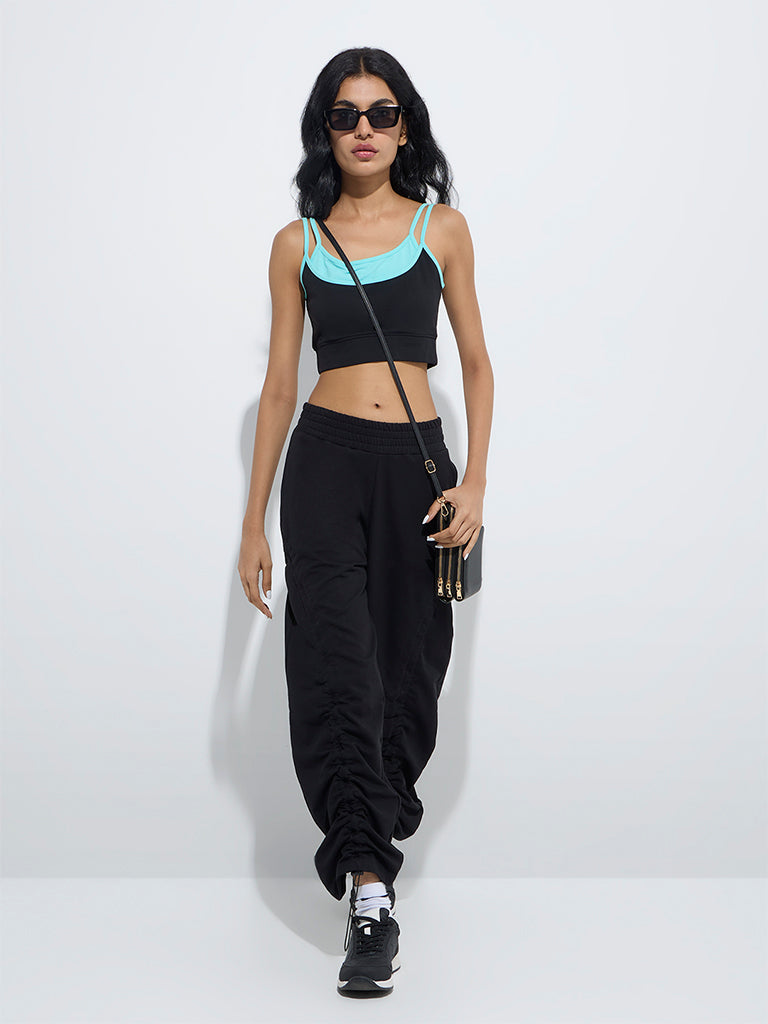 Studiofit Black Colour-Blocked Cotton-Blend Top