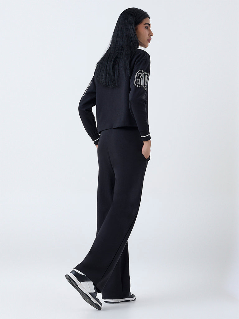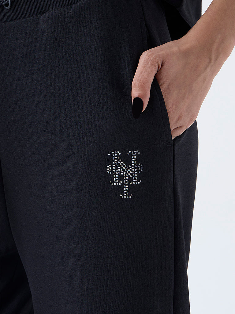 Studiofit Black Embellished High-Rise Cotton-Blend Pants