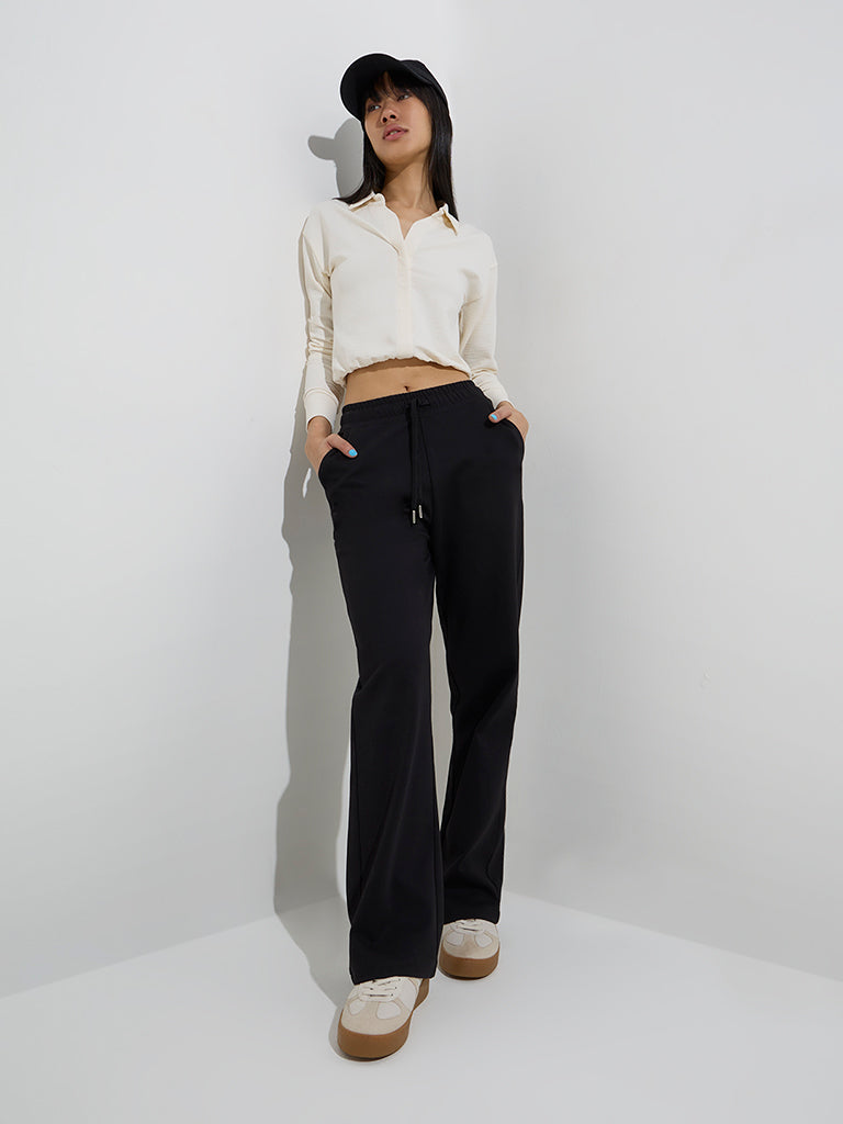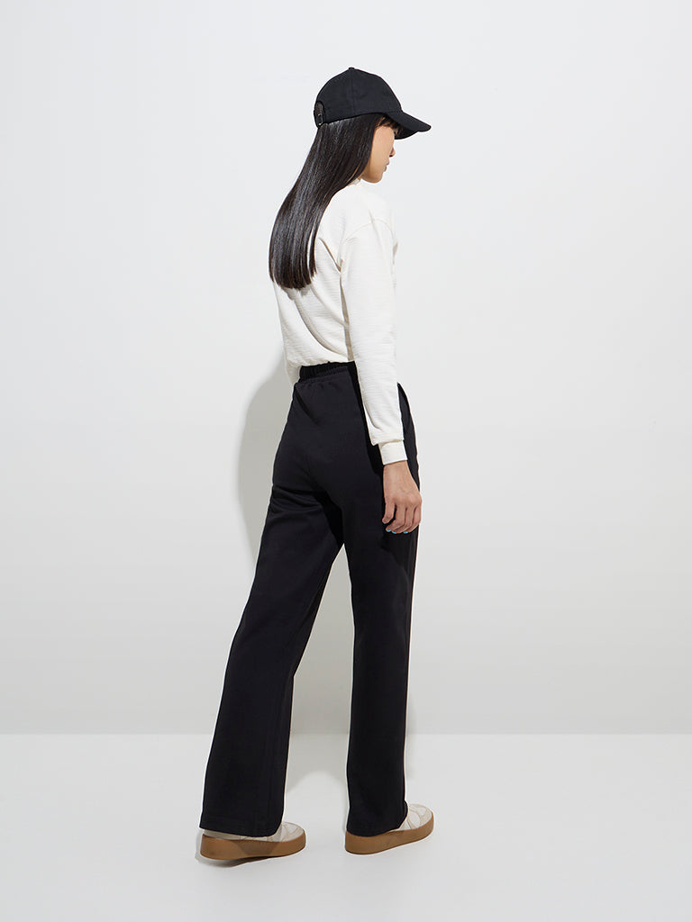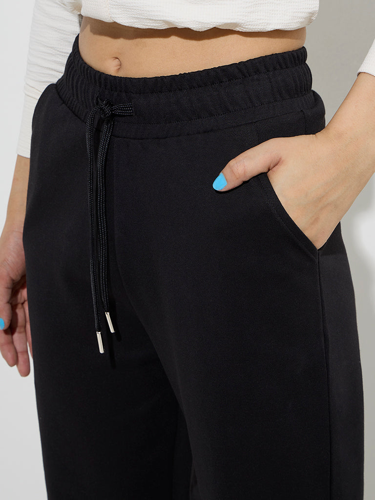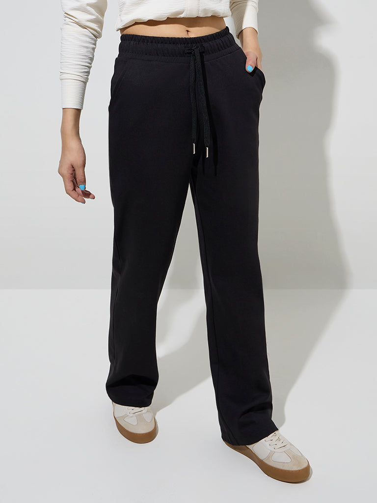 Studiofit Black High-Rise Cotton-Blend Track Pants