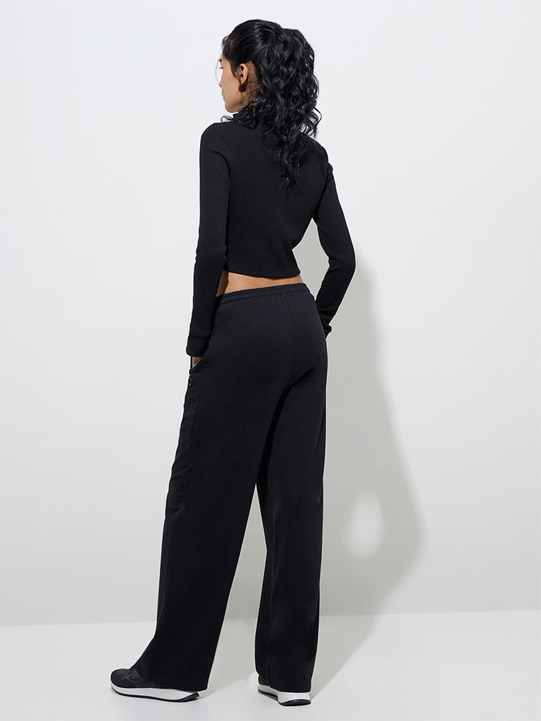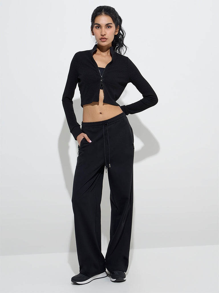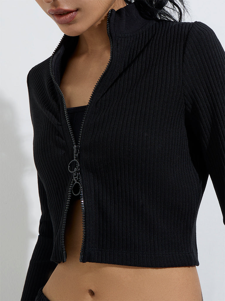 Studiofit launches this black jacket offering ribbed texture. Made from quality fabric. it carries a high-neck. zipper placket. and full sleeves.