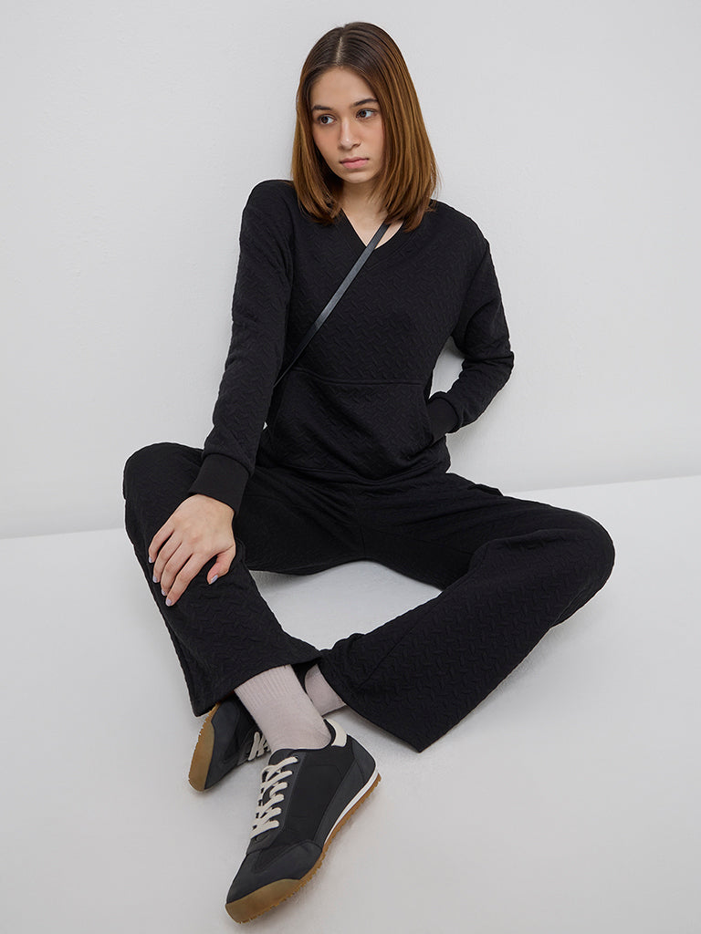 Be the first to review “Studiofit Black Self-Textured Sweatshirt”