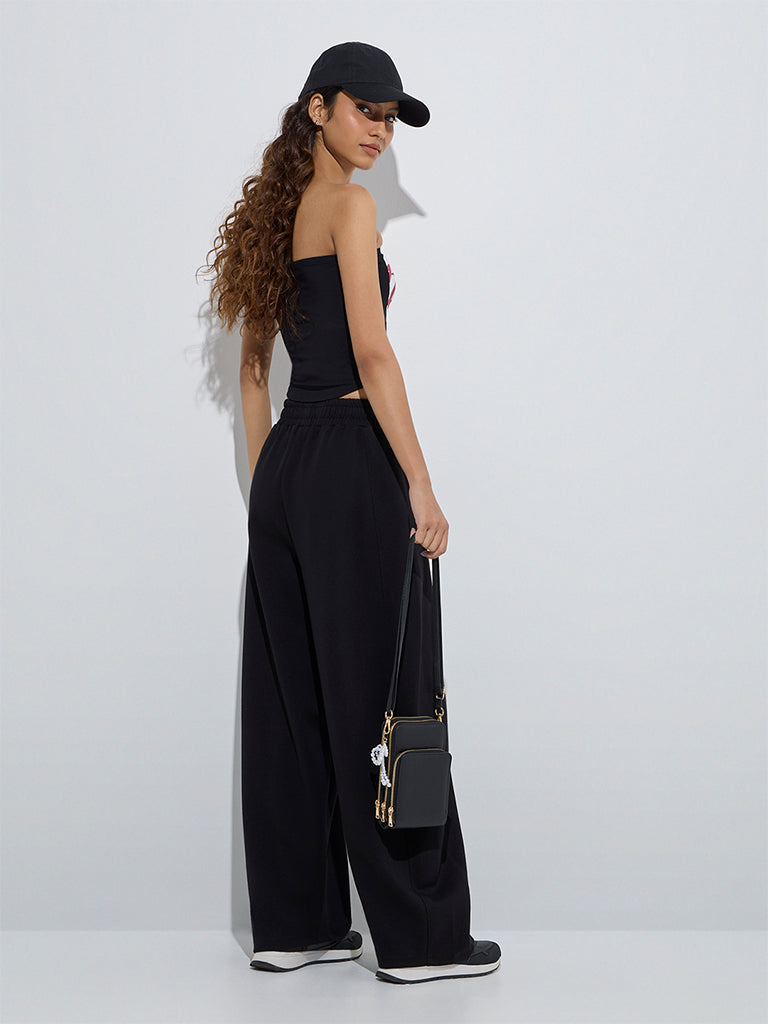 Studiofit Black Solid High-Rise Cotton Track Pants