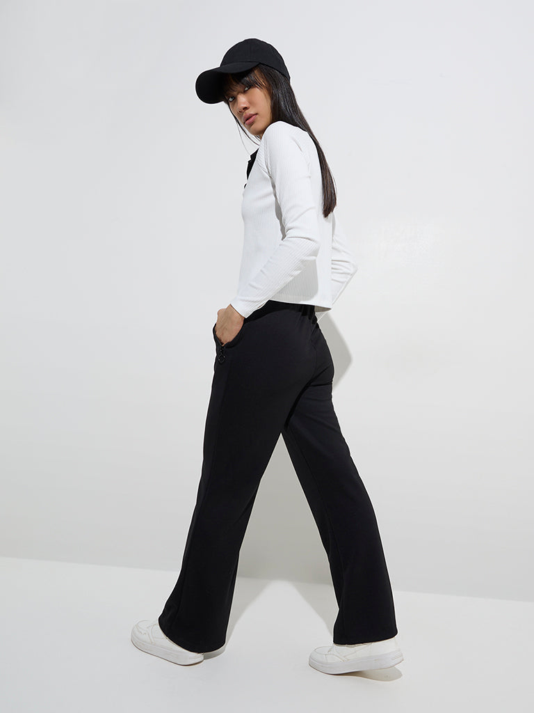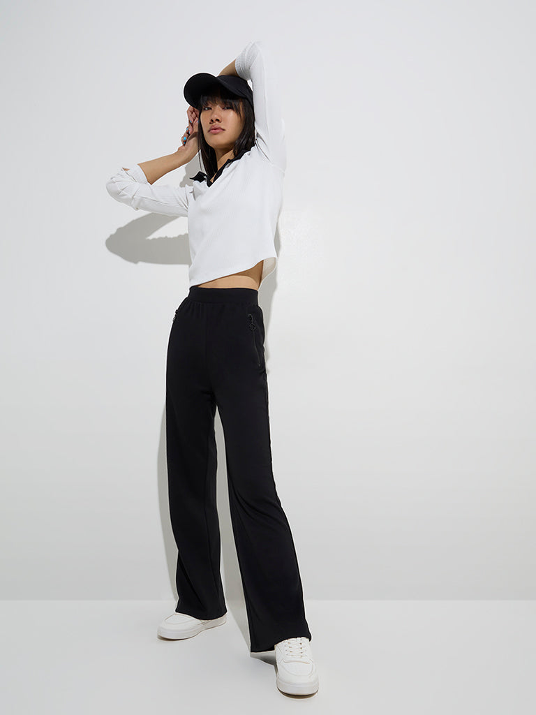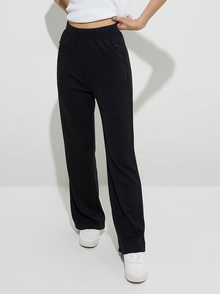 These black track pants from Studiofit offer a sleek. comfortable fit. Made from a breathable fabric. they feature an elasticated waistband and zip-lined pockets for functionality.
