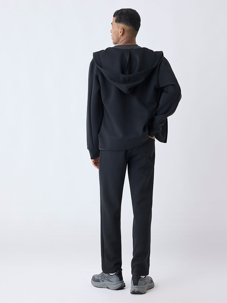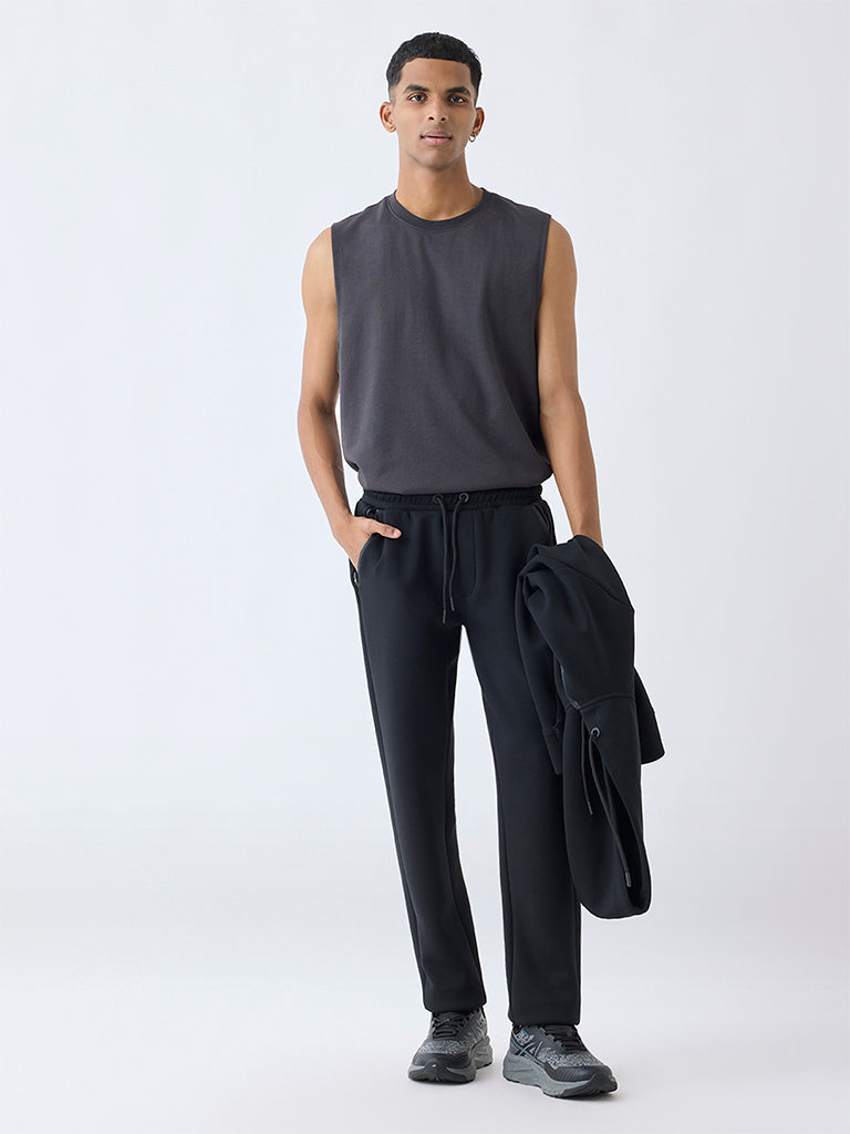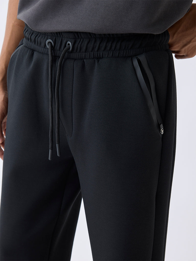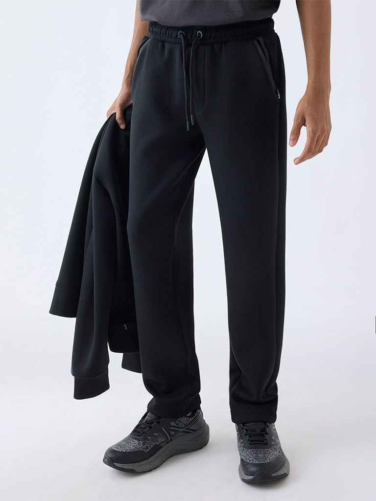 Studiofit Black Solid Relaxed-Fit Mid-Rise Track Pants