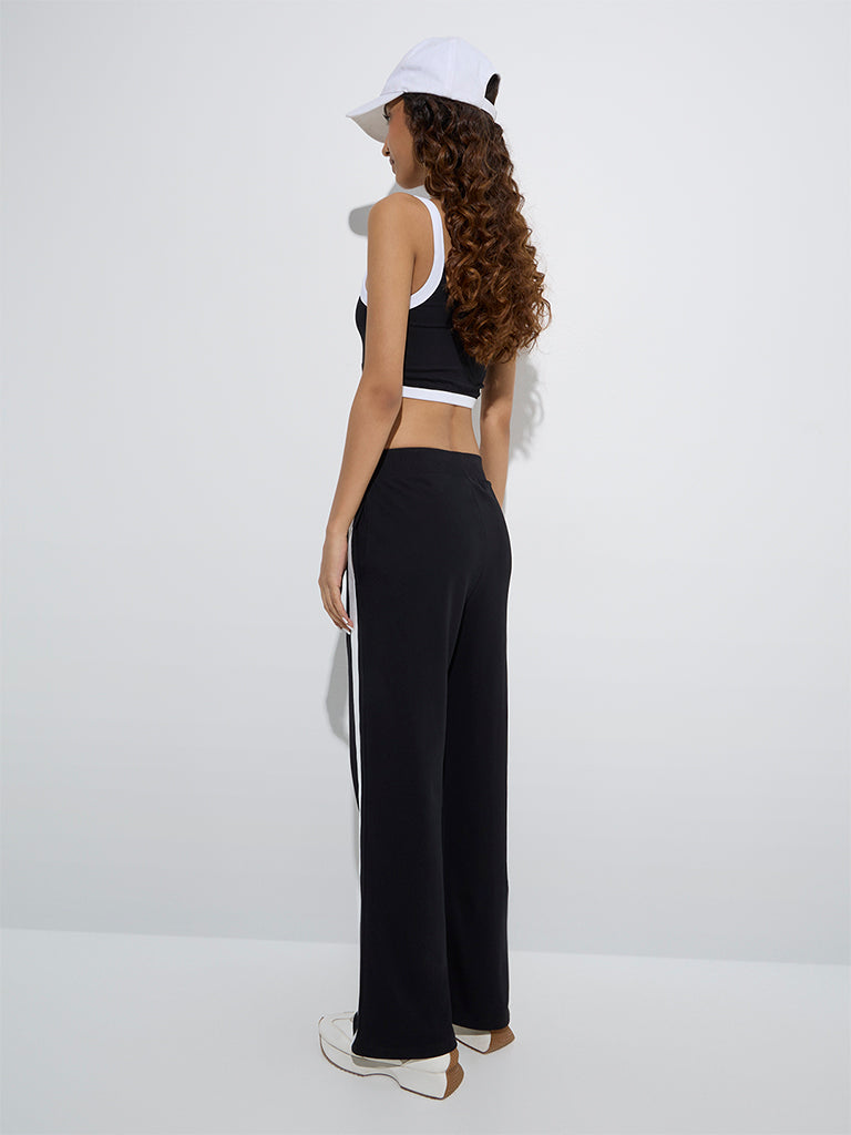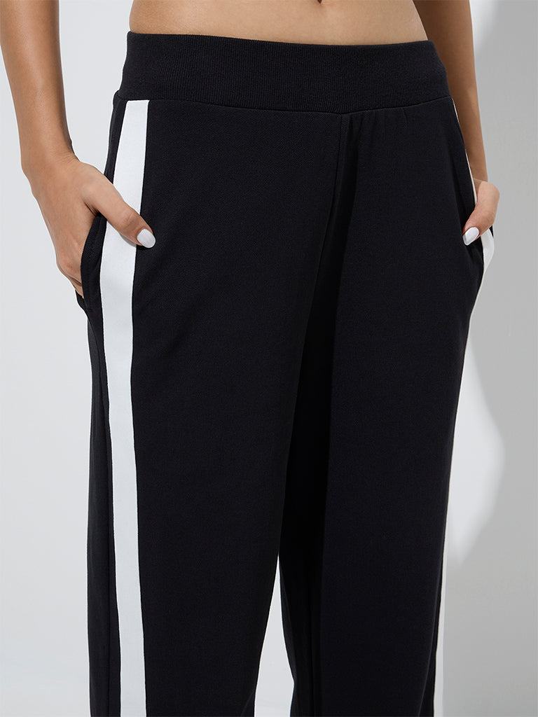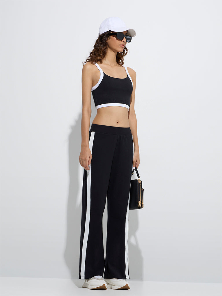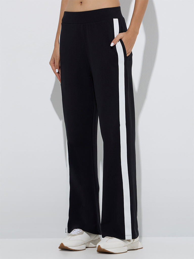 Studiofit Black Striped High-Rise Cotton-Blend Track Pants