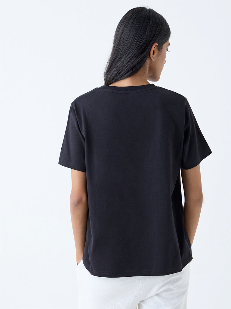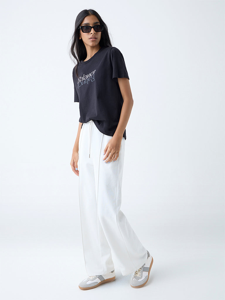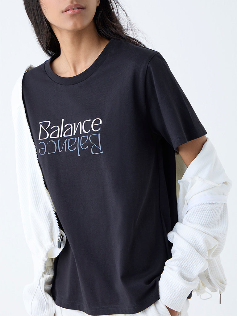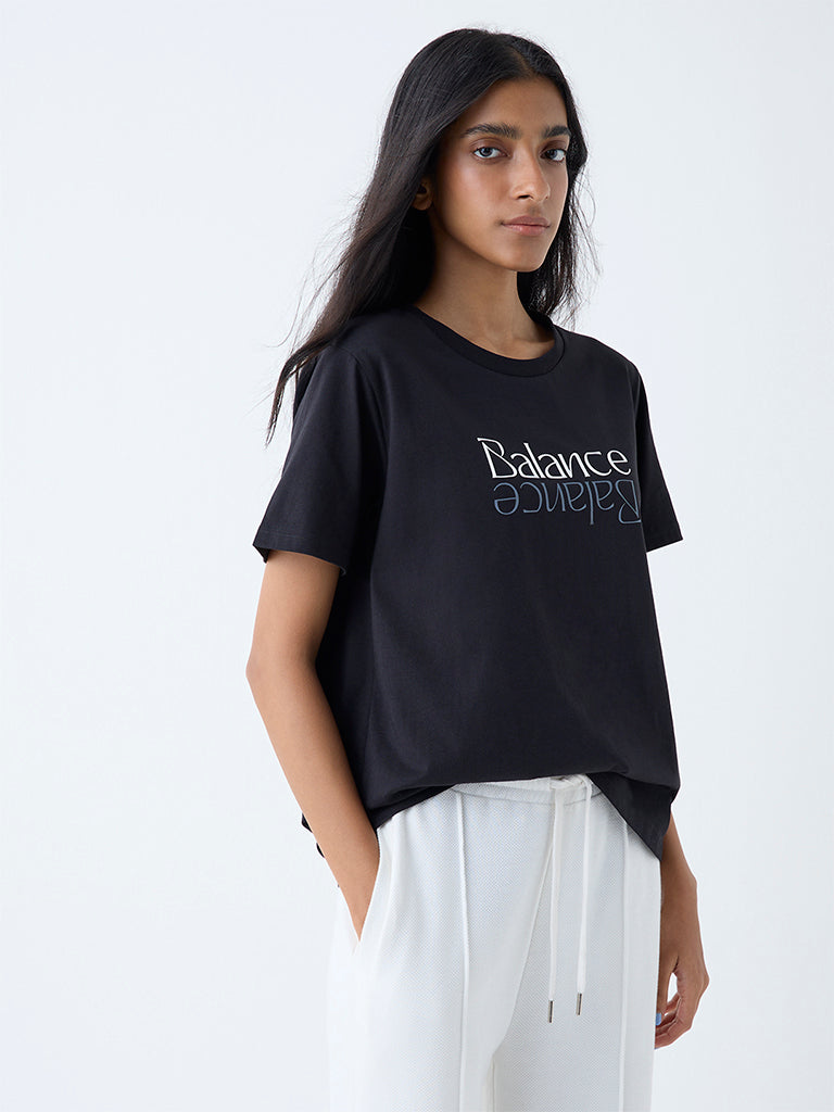 Bring oomph to your workout wardrobe with this black t-shirt from Studiofit. Cut from pure cotton. it features a round neck. half sleeves. and bold text detailing at the front for a punch of attitude.
