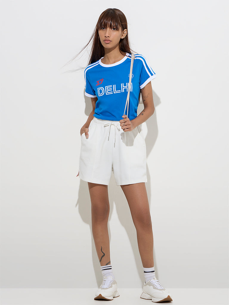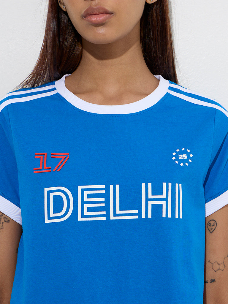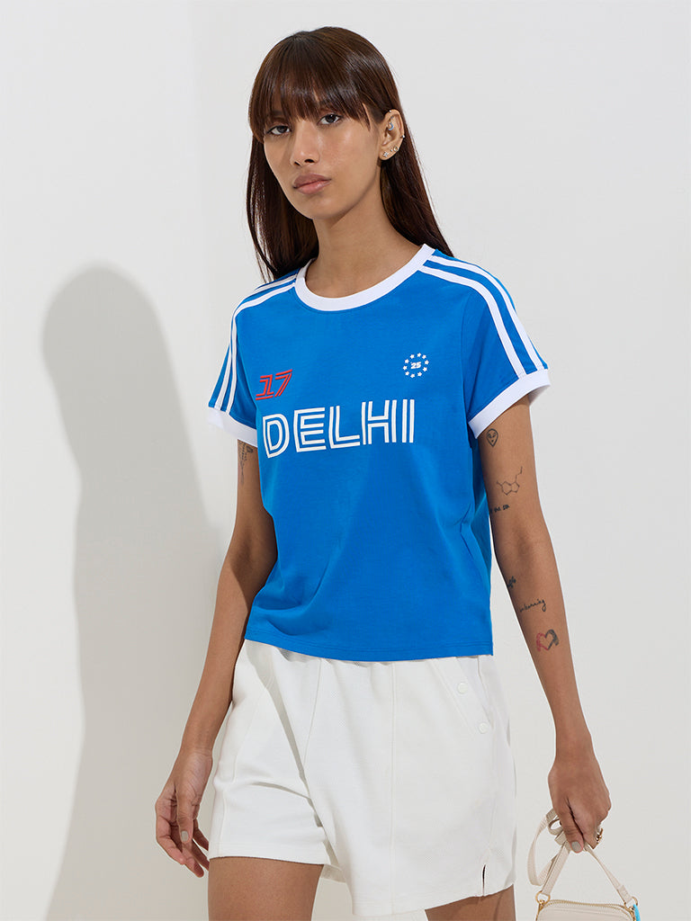 Studiofit Blue Text Printed Cotton T-Shirt