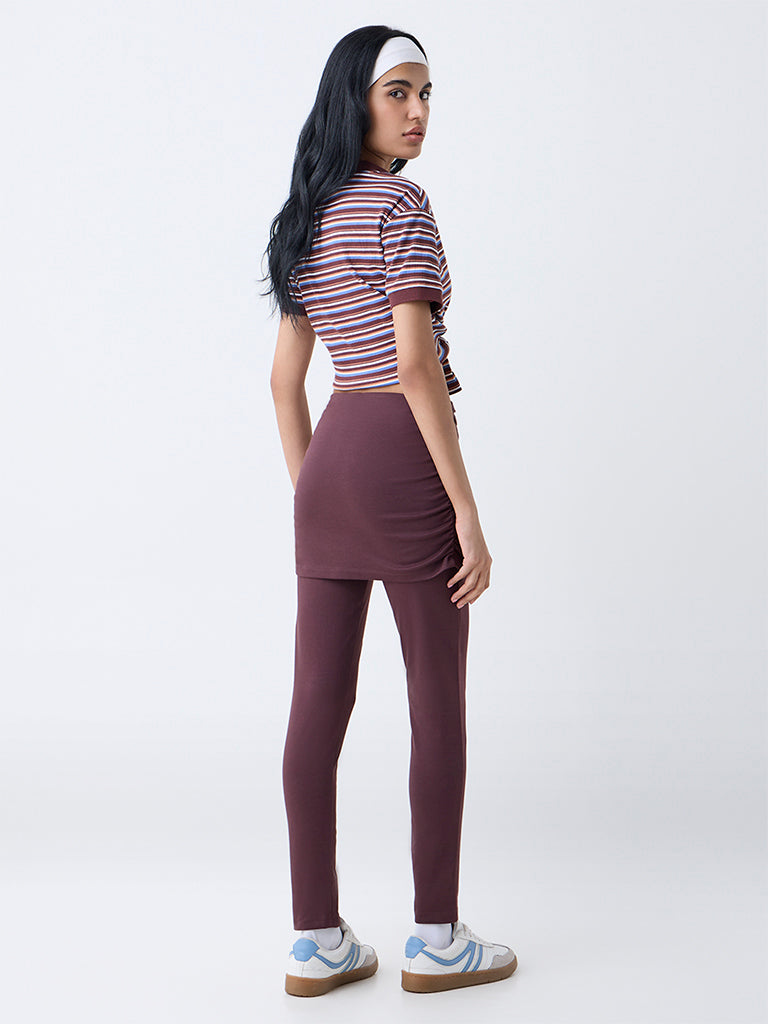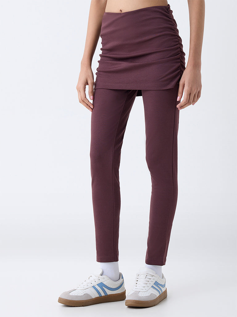 Head to the gym in style in these brown pants by Studiofit. Made from a soft cotton-blend fabric. they feature a crossover waist and ruched detailing for a flattering fit. Designed for workouts or athleisure days. the silhouette combines comfort with a modern edge. letting you stay active without compromising on style.