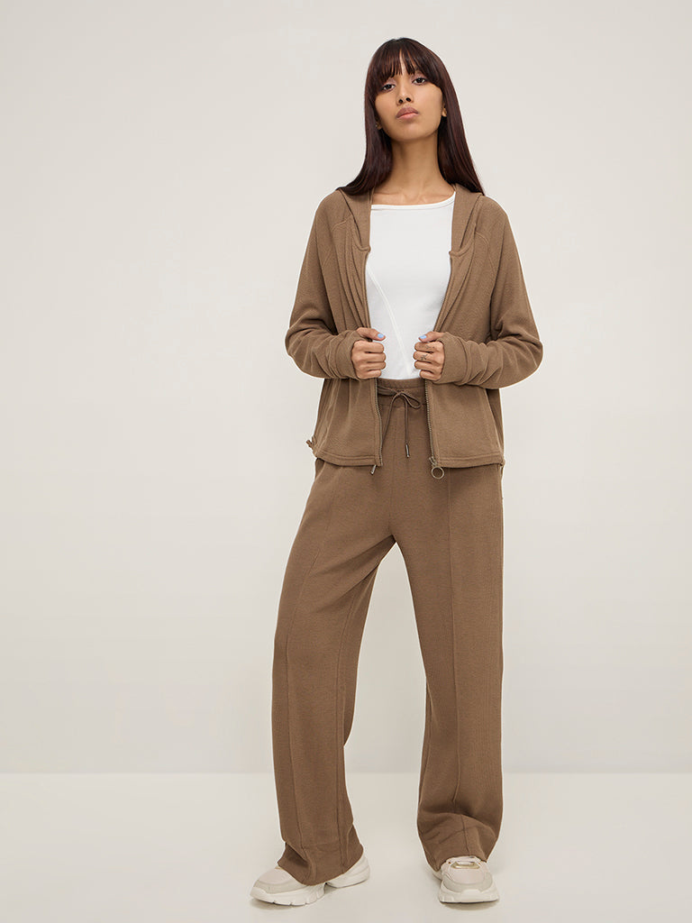 Studiofit Brown Self-Textured High-Rise Cotton-Blend Track Pants