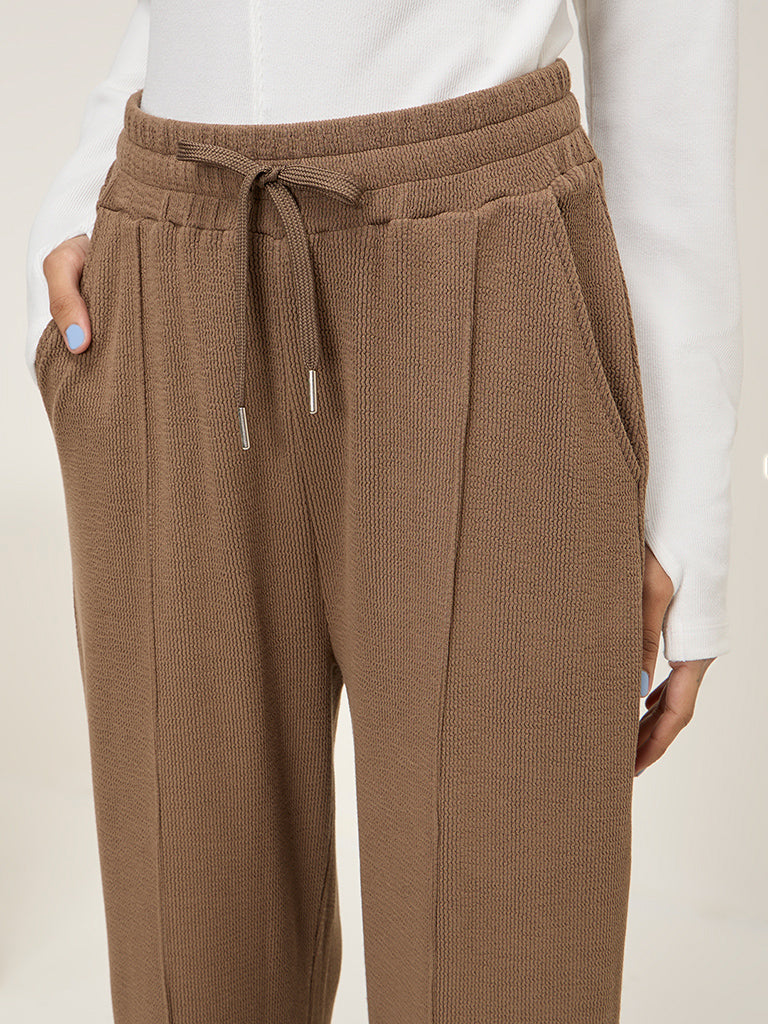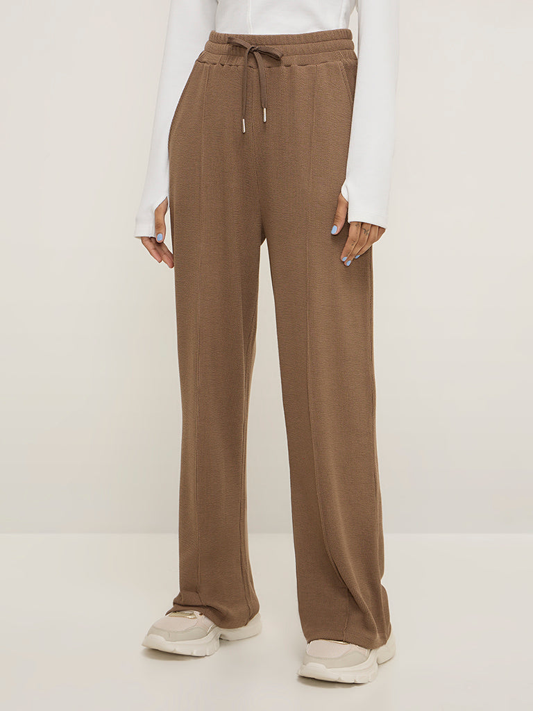 These brown track pants from Studiofit are crafted in a self-textured profile. Spun from a lightweight fabric. the high-rise pair is fitted with an elasticated drawstring waistband and two side pockets.