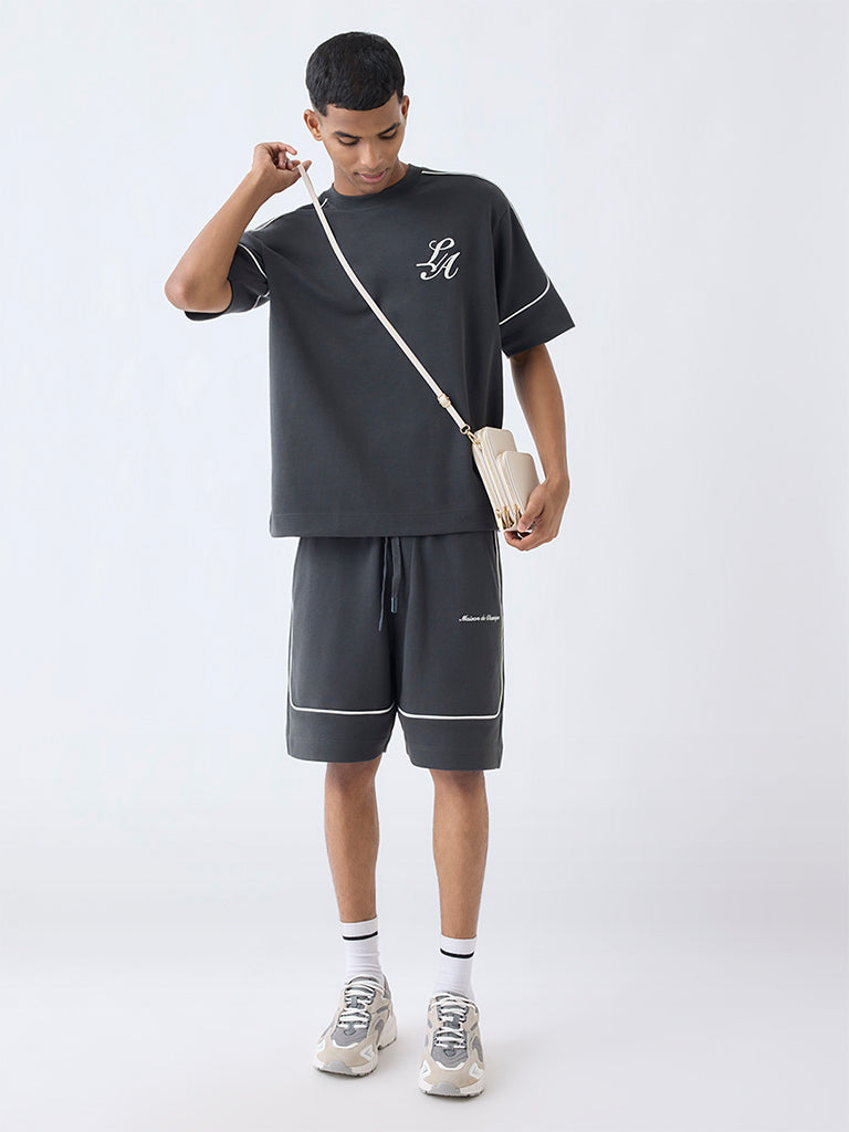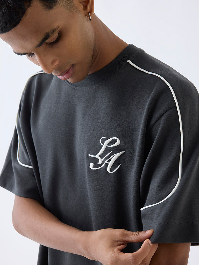 Studiofit Charcoal Text Pattern Relaxed-Fit T-Shirt