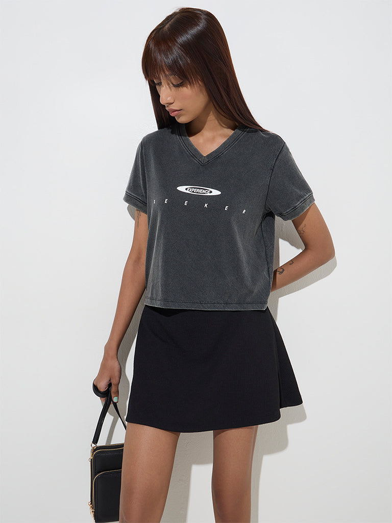 This charcoal t-shirt from Studiofit is defined by bold text prints that add a striking touch. Crafted from pure cotton for a breathable feel. it includes a V-neck and short sleeves.