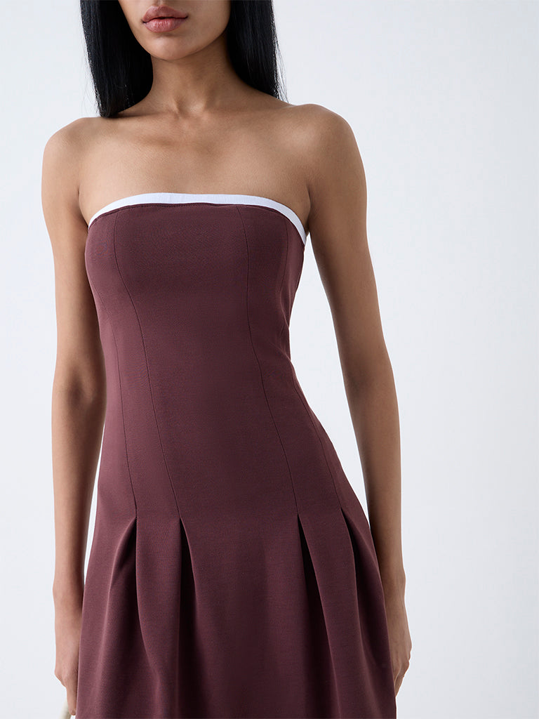 Be the first to review “Studiofit Dark Brown Box Pleated Tube Dress”