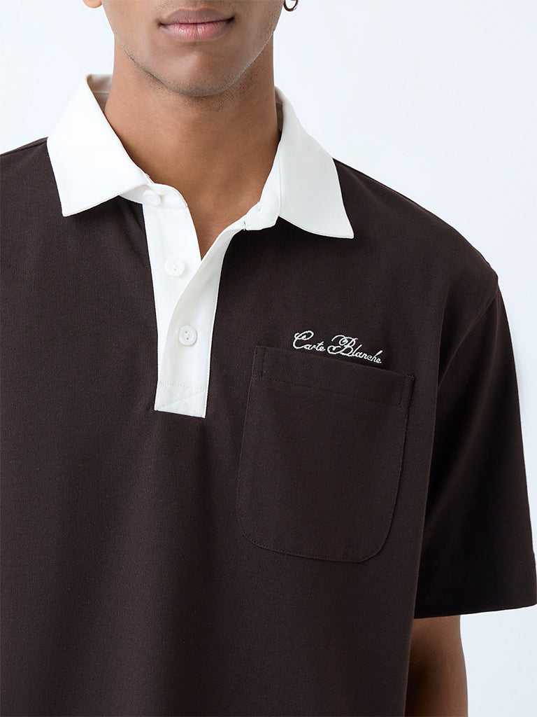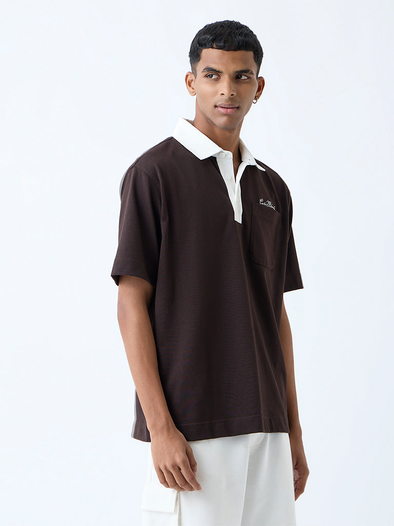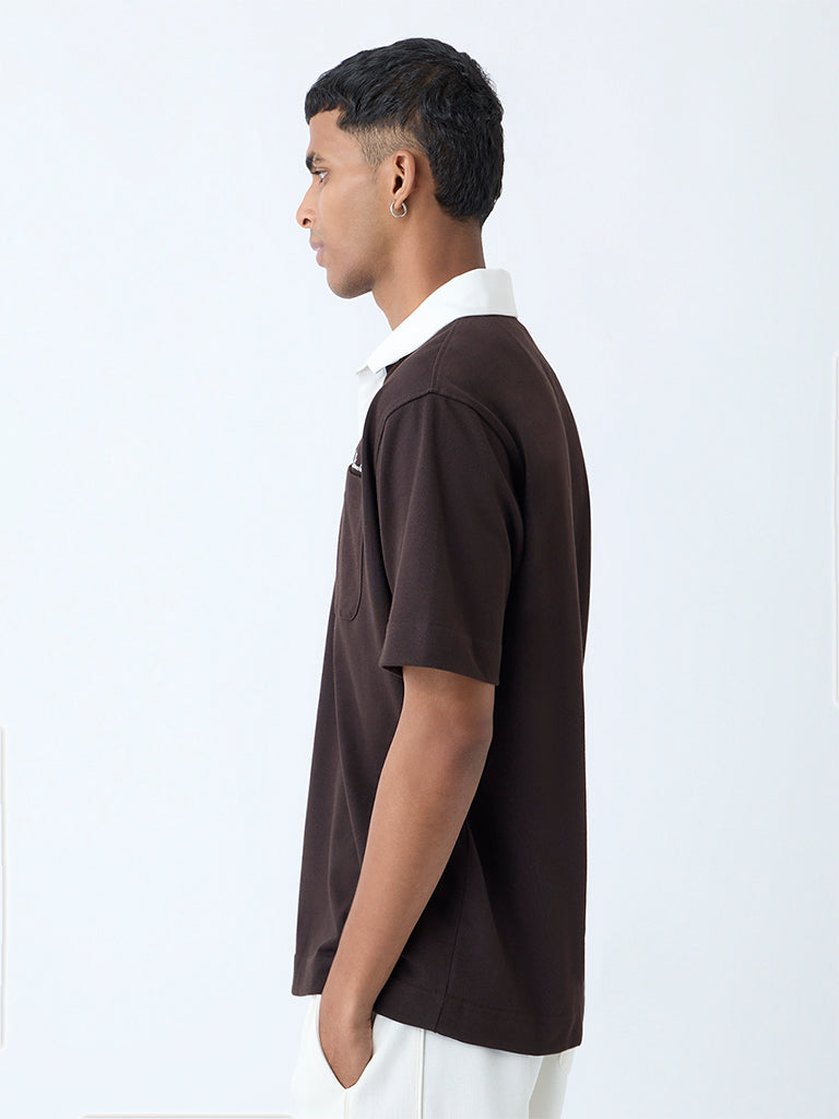Studiofit Dark Brown Relaxed-Fit Cotton-Blend Polo T-Shirt