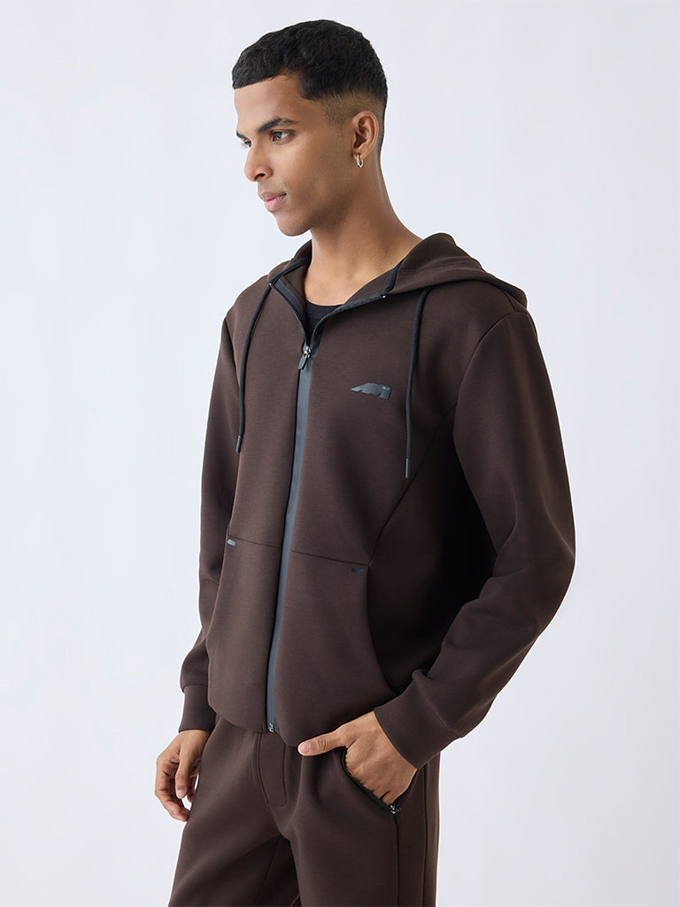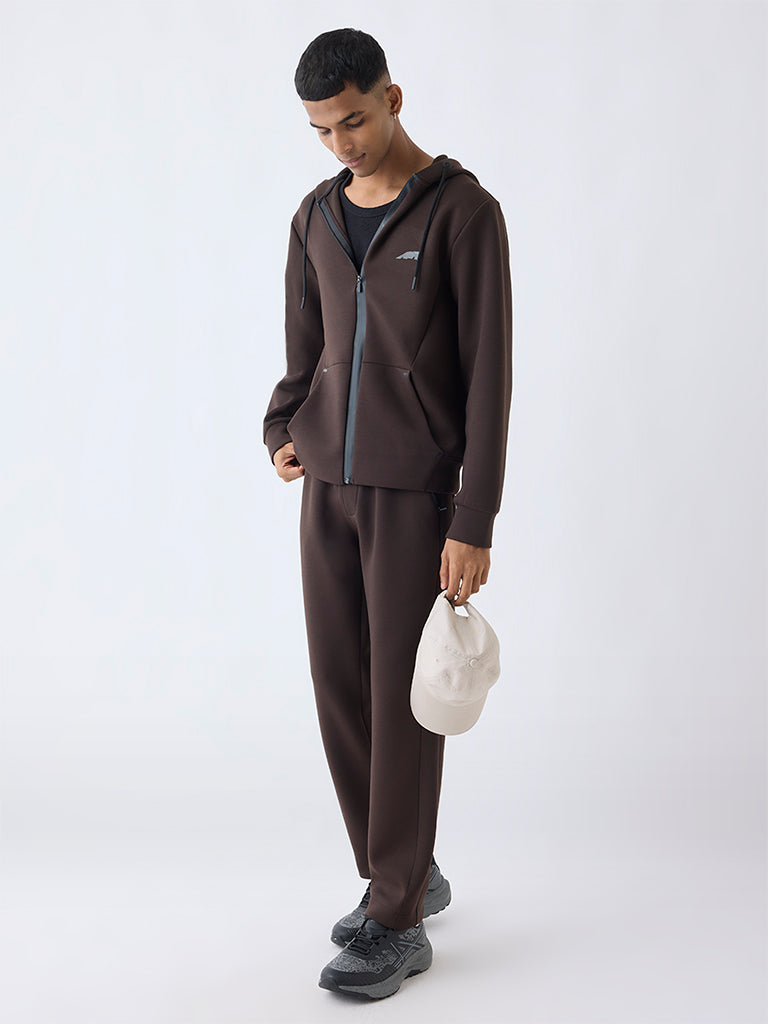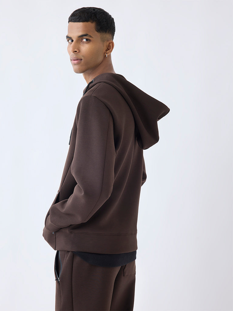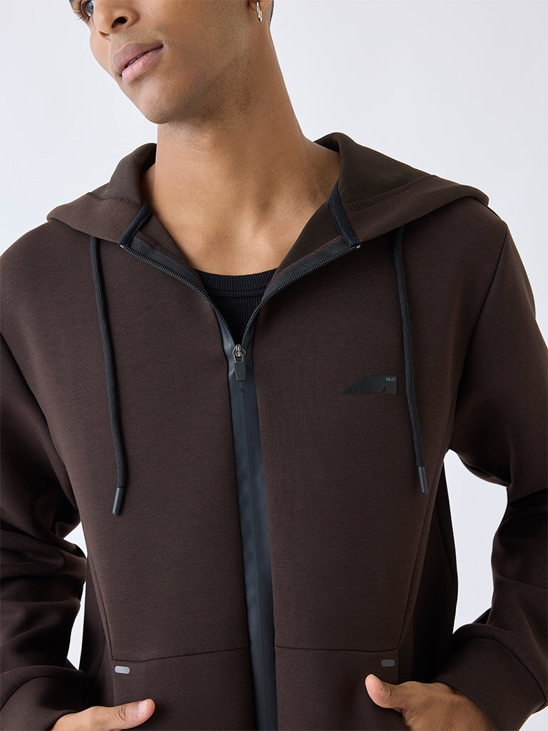Studiofit Dark Brown Relaxed-Fit Hooded Jacket