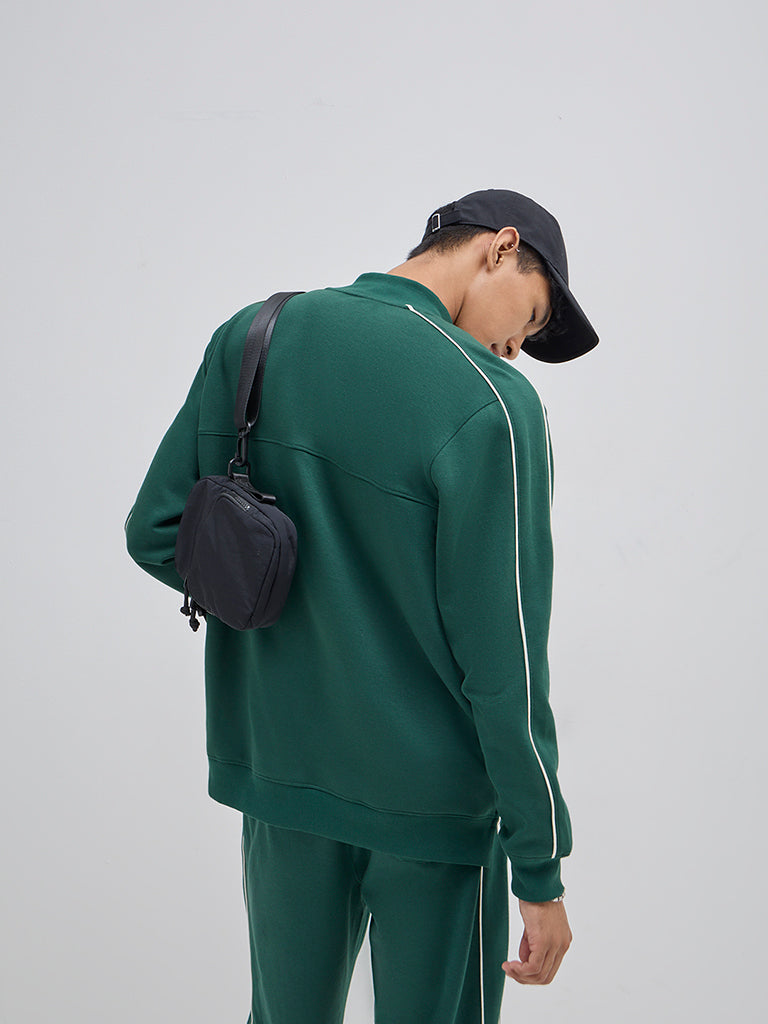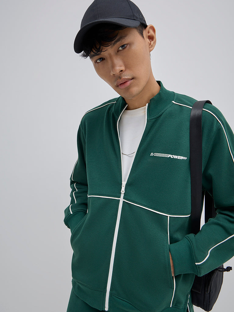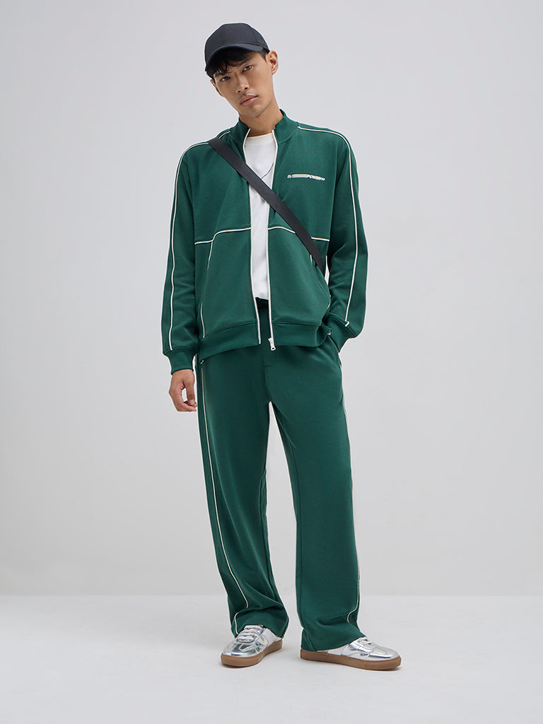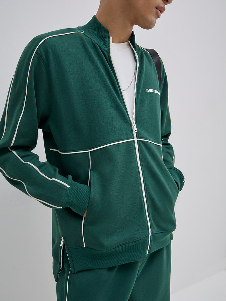 Studiofit presents this dark green jacket with stylish seam-detailing. The relaxed-fit activewear offers maximum comfort with its breathable and delicate fabric. It is structured with a high-neck enclosed with a zipline. full sleeves and side pockets.