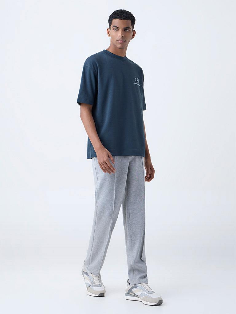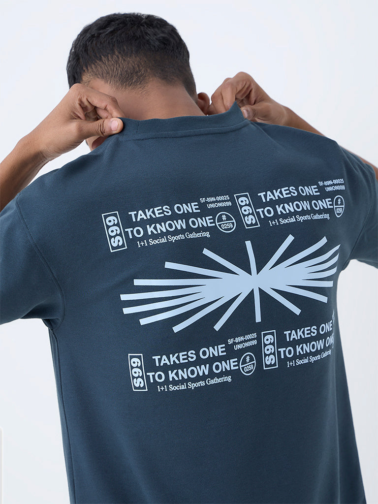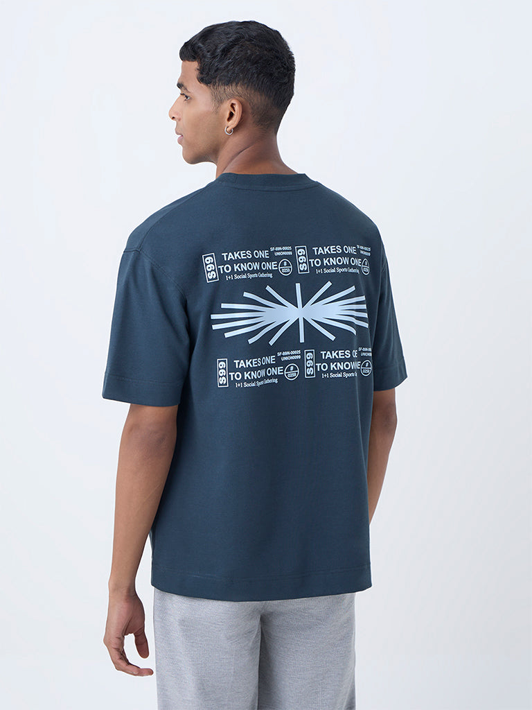 Studiofit Dark Teal Typographic Relaxed-Fit Cotton T-Shirt