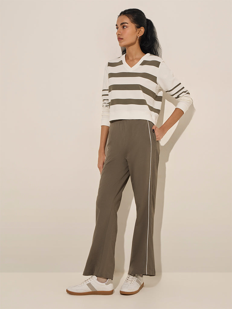 Studiofit Dusty Olive High-Rise Cotton-Blend Track Pants