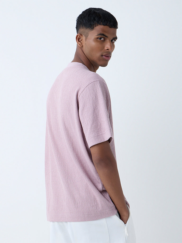 Studiofit Dusty Pink Self-Textured Relaxed-Fit Cotton-Blend T-Shirt